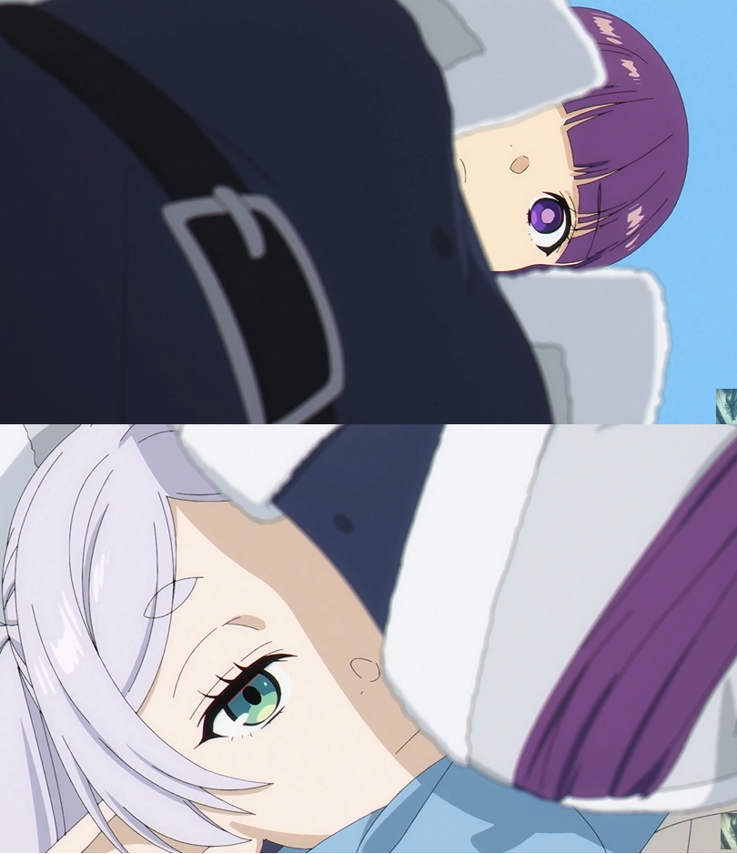 4 серия была прям уныленькой с этим вымученным свиданием. Всё это выглядит так, будто просто обстоятельства так сложились, что есть парень и девушка, которые вынуждены путешествовать вместе и на фоне этого от нехуй делать Ферн и ебет мозги парню. Романтических чувств либо нет, либо они очень чахлые, к этому и отсутствие какого-либо влечения. Причем влечение можно показать посредством любимого япошками "стеснения".