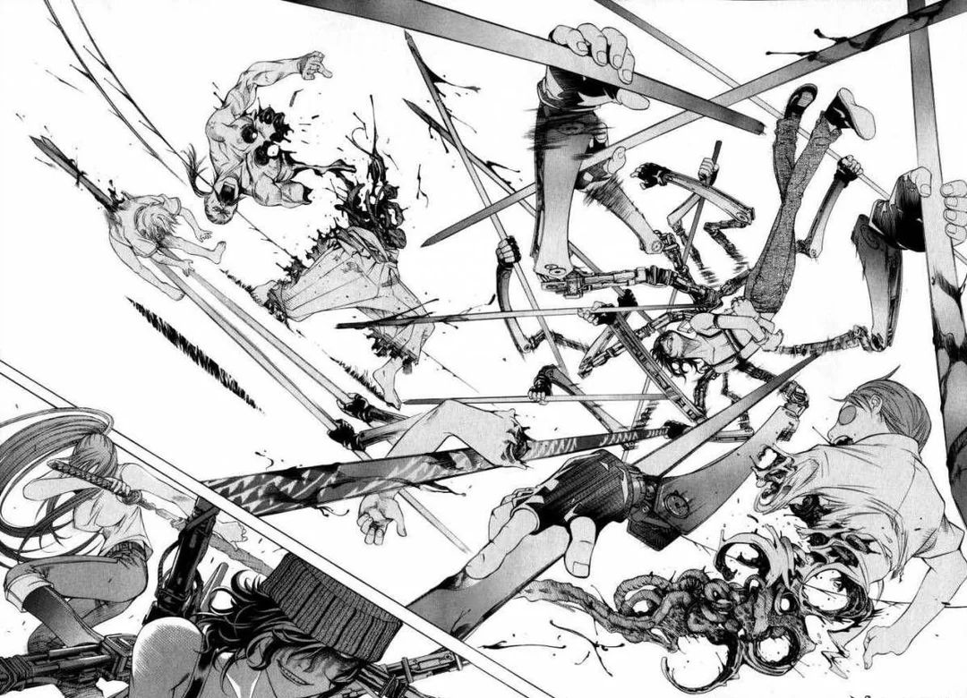 Досмотрел до одиннадцатой включительно Tenjou Tenge. Даже Нацуме Шин был закуколжен, да что это за тайтл-то такой. В конце нулевых - начале десятых, я, помнится, на двенадцатой что ли дропнул... Боевой куколд со сверхсилой и сверхспособностями на боевом куколде со сверхсилой и сверхспособностями.
