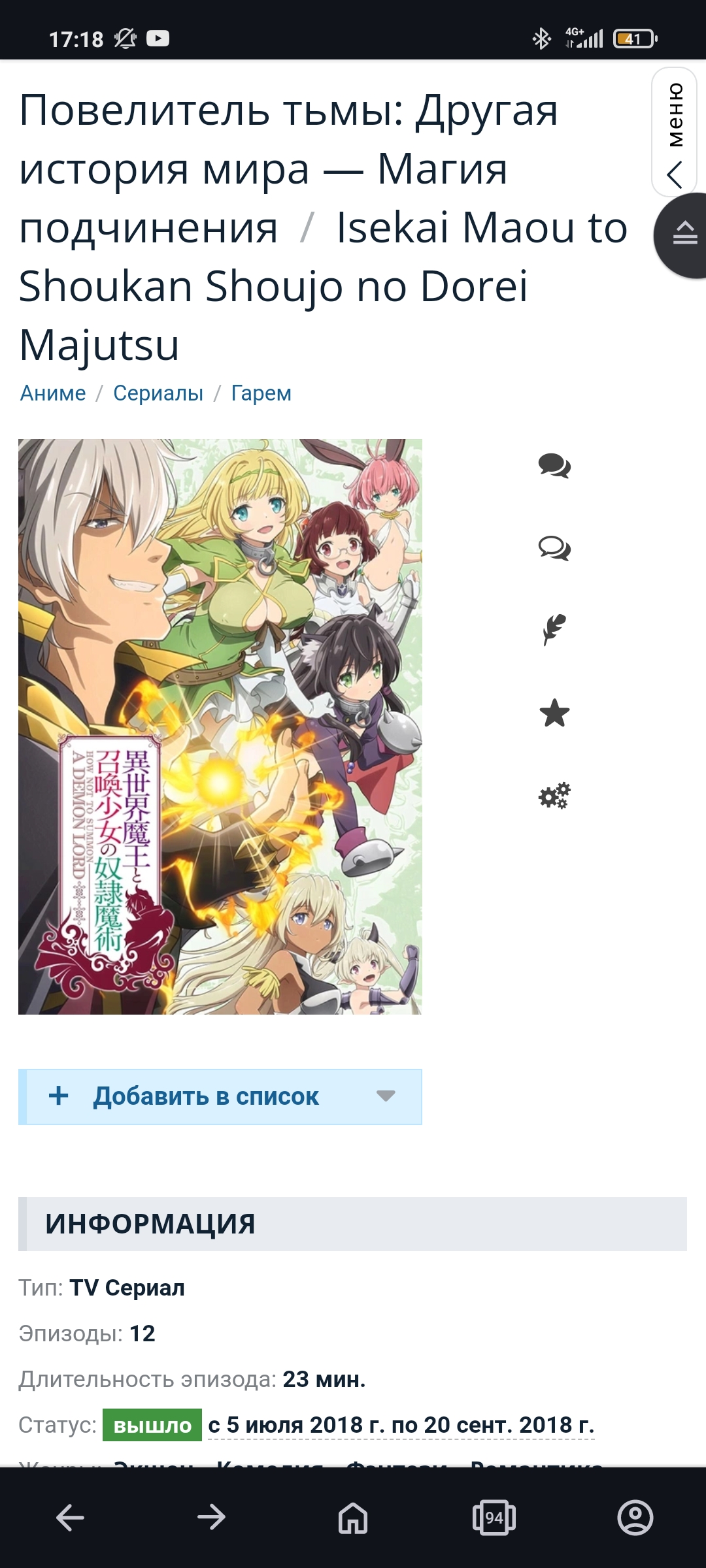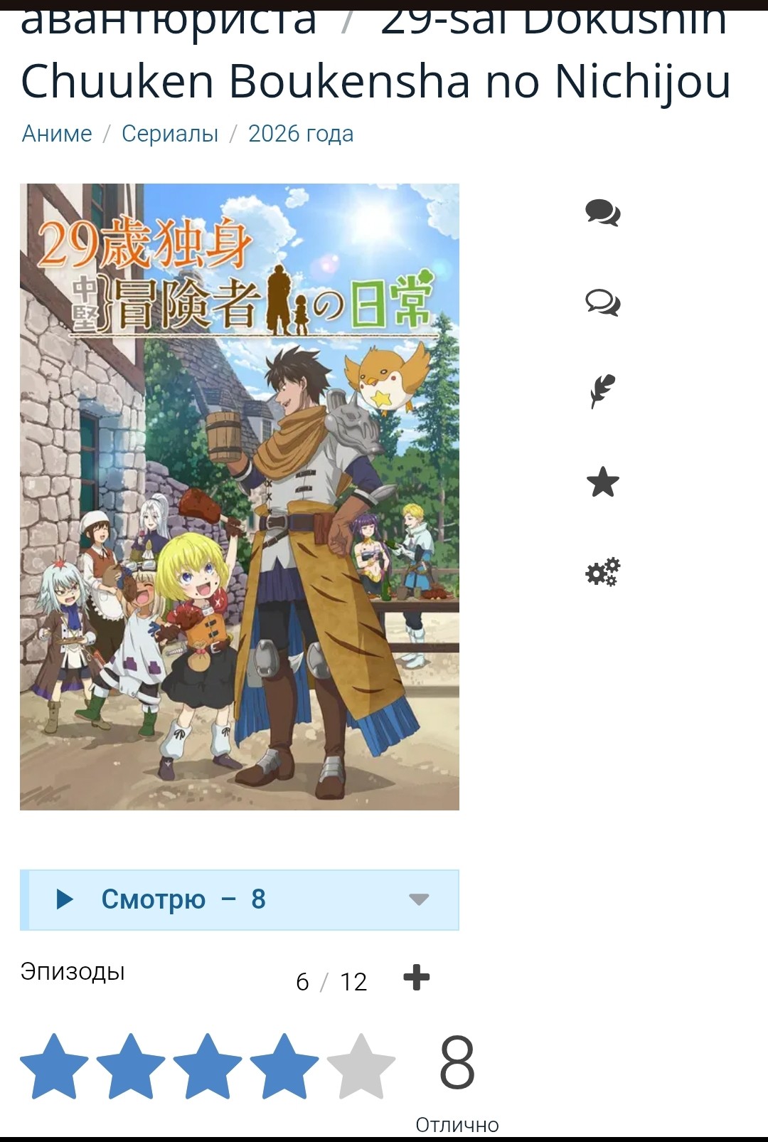 кал короче переоцененный, если хотите приключения посмотреть лучше подземелья и вкусности, там персонажи живее и серии интереснее