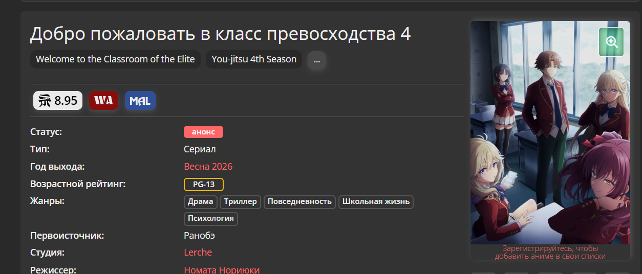 >>7966732 Увы, я сужу. Ну а как еще судить? Листаешь сезон в мале, смотришь жанр + обложку. Почему не могли сделать нормальную обложку, вывести туда пару мейн персов, чтобы видно было что за титул и о чем, а не вот этот ебаный вид с 10 метров?