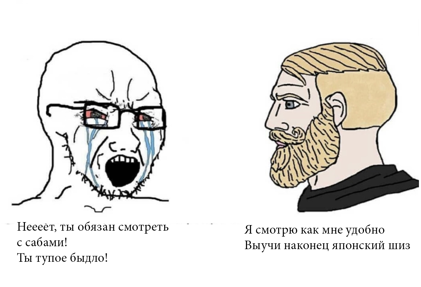Просто представьте, каково быть рудабодебилом. Нормальный человек просто включает серию и смотрит с сабами. Рудабодебил вместо этого сидит 4 часа выбирает рудаб (а потом в х3 смотрит аниме на втором мониторе)