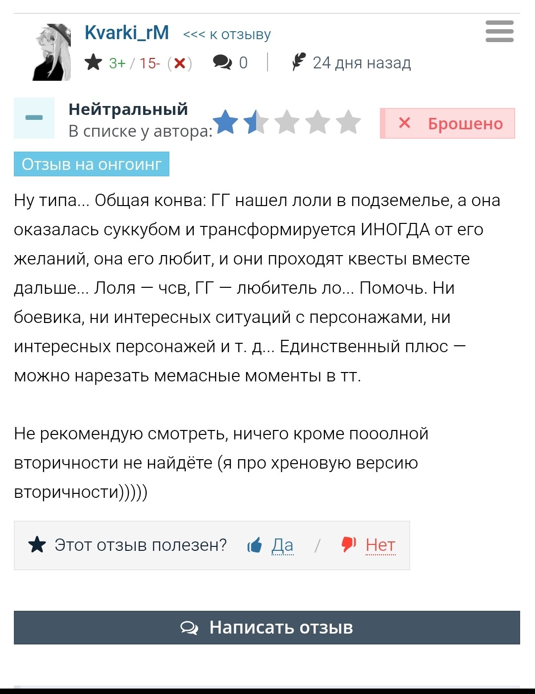 Собсна есть куча хороших тайтлов, но там так или иначе будет присутствовать эмоциональная ебка. А я не хочу этого и либо откладываю просмотр, либо сразу говорю себе, что смотреть это не буду. Чтобы наконец прикоснуться к ним, мне, видимо, нужно очерстветь или изменить свое отношение к неприятному.