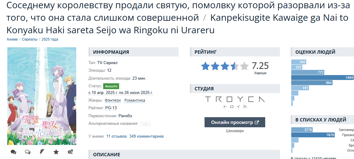 >>7971100 Не смотри на названия, они уже давно стали мемом и кринжом. >>На уровне Элейны или хуже? Это вообще о другом, больше фентезийная комедия. Сейчас к слову в онгоинге идёт похожая Шампиньонная ведьма можешь тоже закинуть в список. >>злодейки Просто тренд, потому что исекаи с ояшами имбаскильными уже всех заебали, тут просто что-то новенькое, хотя родоначальником была Бакарина. Хотя в целом ЖГГ в исекае выглядит посвежее - "Нина в королевстве звёзд" или книжный червь. Так и фентезятня полусёздевая типа "однажды я стала принцессой". >>Мне под 30 Мне 37 >>фейт Был неплохой шёпот рассвета в странной подделке, но то, что сейчас в онгоинге идёт - кринжатура с косыми ебальниками, но людям нравится. Ещё к слову был ремейк Волчицы и пряностей- она строго по первоисточнику. Ещё неплохой офисный ромком "Ты умеешь хранить секреты?" Ещё мне Koroshi Ai понравился, хотя местным анонам он почему-то не зашёл. Незнакомцы в другой жизни -почти не обсуждались ИТТ, как и Фабрика иллюзий Алисы и Терезы от маппы. Карманы лета - неплохая экранизация ВНки. К слову чуть выходит за 3х летний период, но если не смотрел люто рекомендую Виви и Летнее время