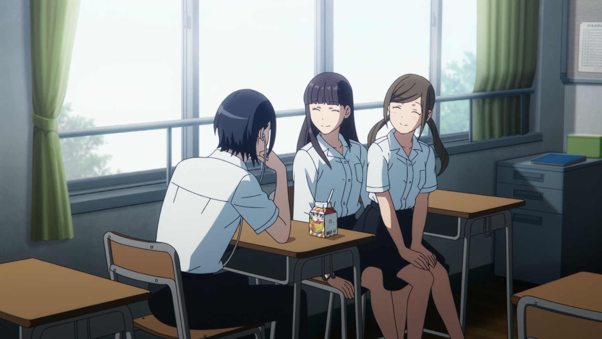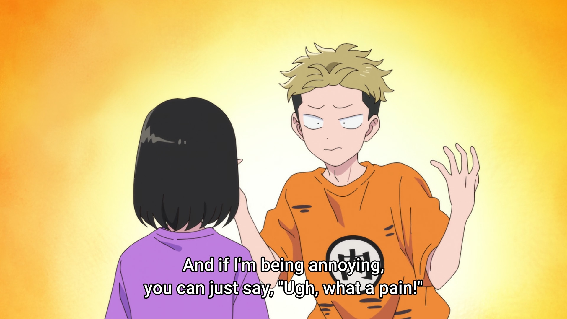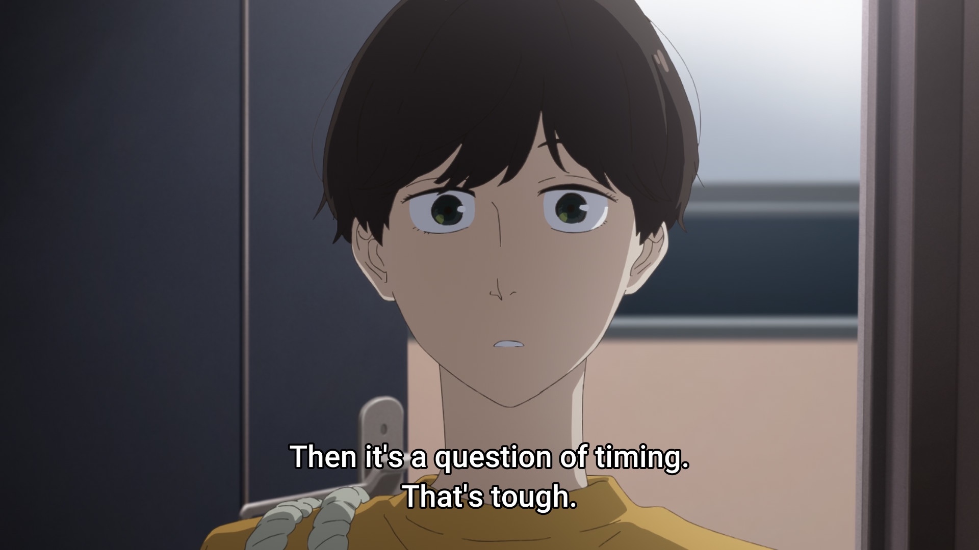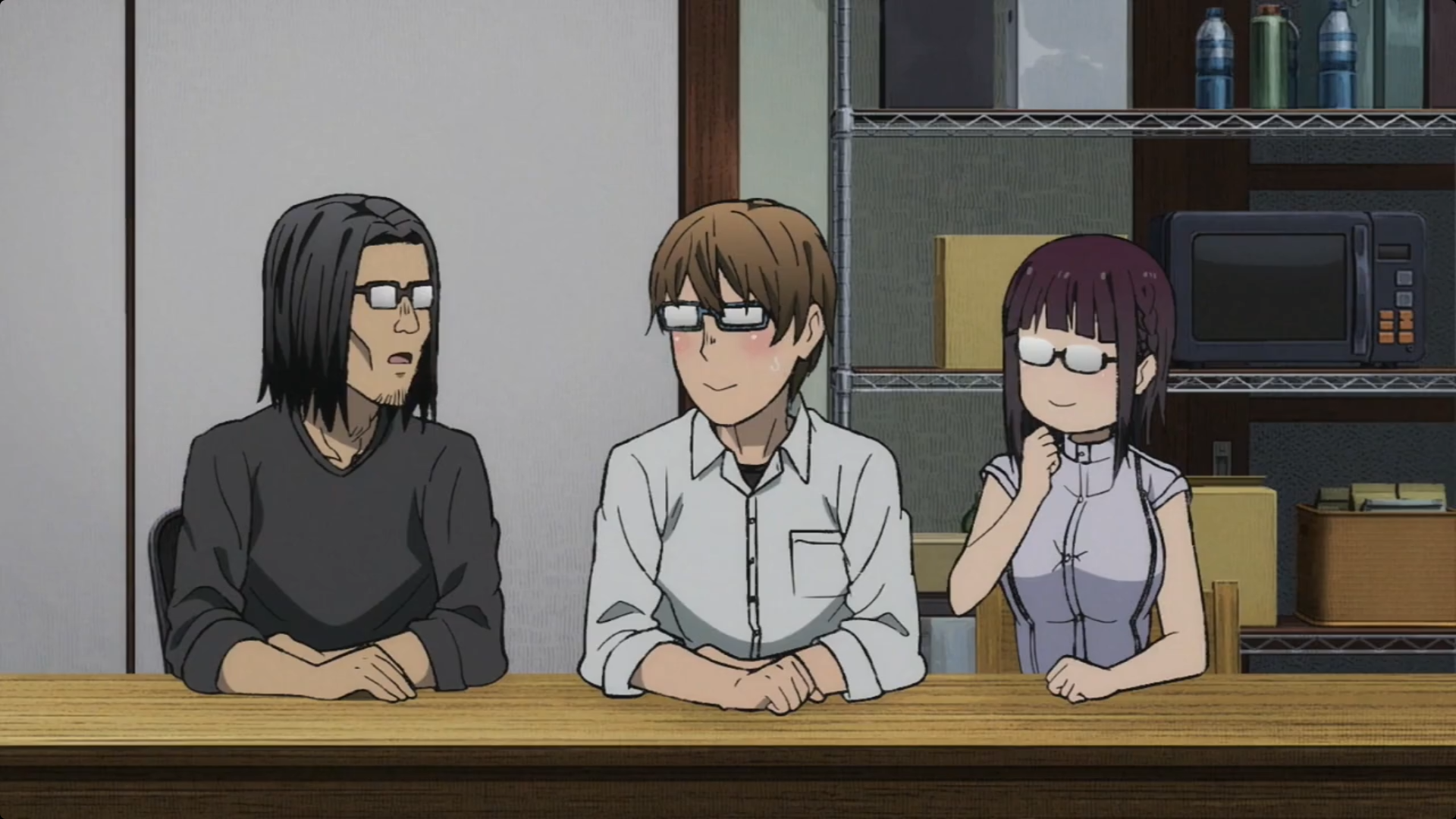 Я обожаю что в этой аниме отношения показываются как тривиальные и простые, без всяких инфернальных драм и хождений кругами. На страдание локального блэкпильщика вообще весело смотреть, надеюсь что хотя бы под конец он выкинет хуйню из головы.