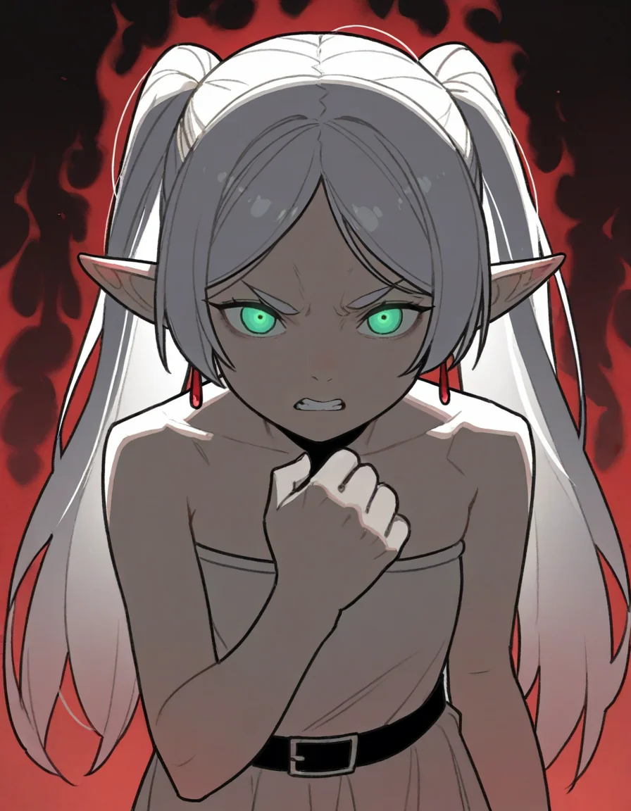 По мнению нейронки в старых аниме картинка была такая будто всё снималось в комнате освещённой очень тусклой лампочкой, и тут кстати ферныня какая-то тощая, без щёчек надутых.