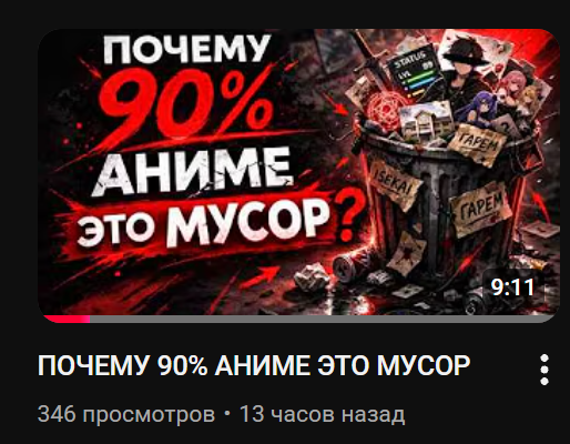Как же заебись, что я вкатывался в аниме в 2020м с таких винчиков как Виви, Вайолет, 86, Летнее время, Бензопилы, Бочки, Пять невест, Мушоку тенсей. Смотрел уже когда были качественные студийные озвучки, а не страдал от одноголосых мерзон. Смотрел в сочных красках и пиздатом качестве, а не серую унылость 4:3 Смотрел на нормальных взрослых героев, а не ублюдских 14-летних трясущихся ояшей, которые спасают мир в перерывах между школьным фестивалем и контрольной по матеше, и попутно теряют сознание если увидят тянку в лифкие. И самое главное, как же заебись, что золотой фонд прошёл мимо меня и я не варился в этом чане с говном, в отличие от тех, кто начинал смотреть аниме с ЗФ.