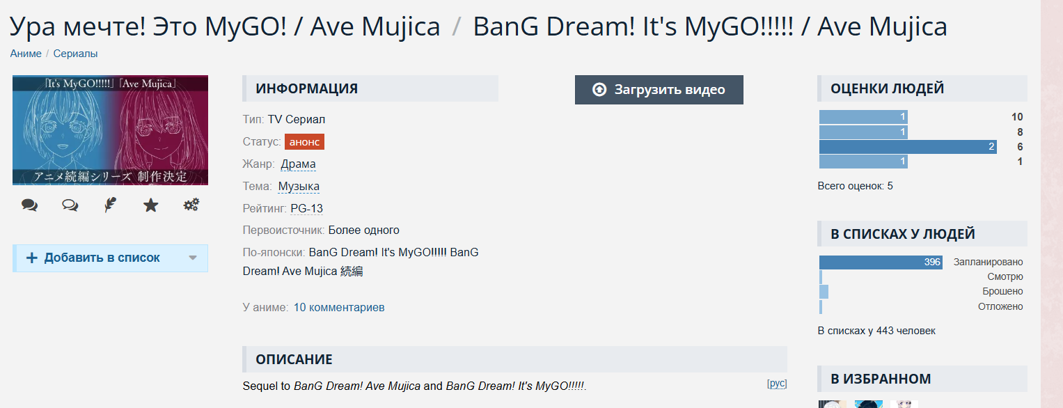 По совету треда глянул данный тайтл. Первый сезон вышел норм - ничего особенного (не фанат индигрупп контента). Немного завис на названии группы 迷子 = MyGo. Истории в меру интересные, неплохо сделали момент с воссоединением группы. Первый сезон плавно перетекает в другой, в котором начинается вся движуха.