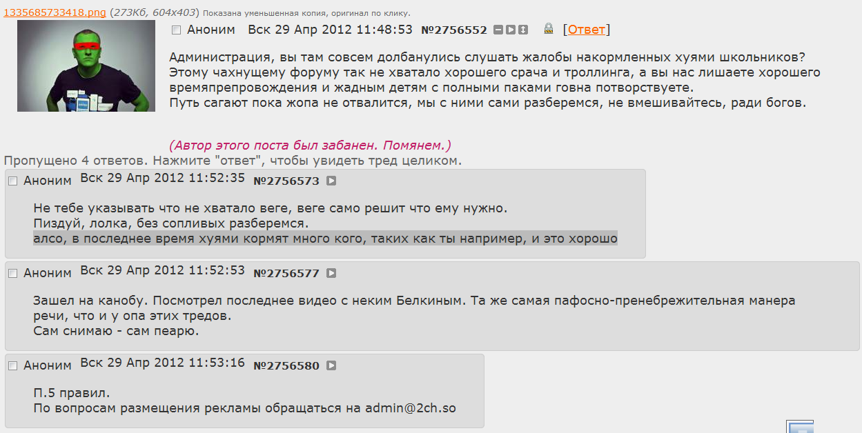 4. Форма жалоб была введена не для того, чтобы жаловаться администрации, что вас заебало видеть одни и те же треды на нулевой. Создайте новый и неповторимый тред, другие скажут спасибо.