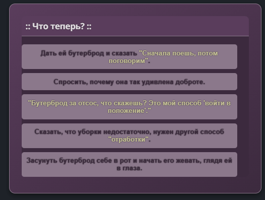 ты ахуел членоглот? это сир клод на тебя колготки наденет. ща собираюсь наверное карточку делать, не могу определиться юзер омежка целитель или оружейник. наверное сделаю карточку так чтоб в гритингах можно было по разному обыгрывать