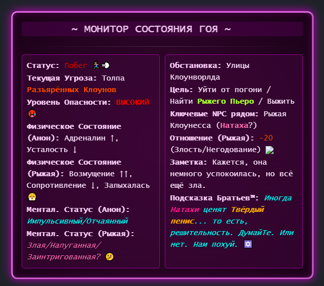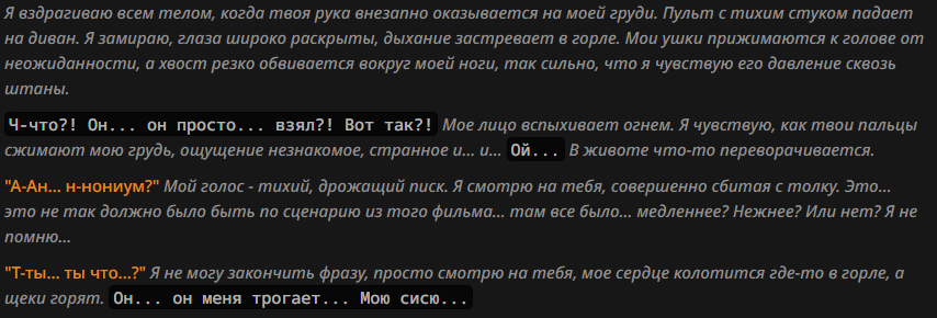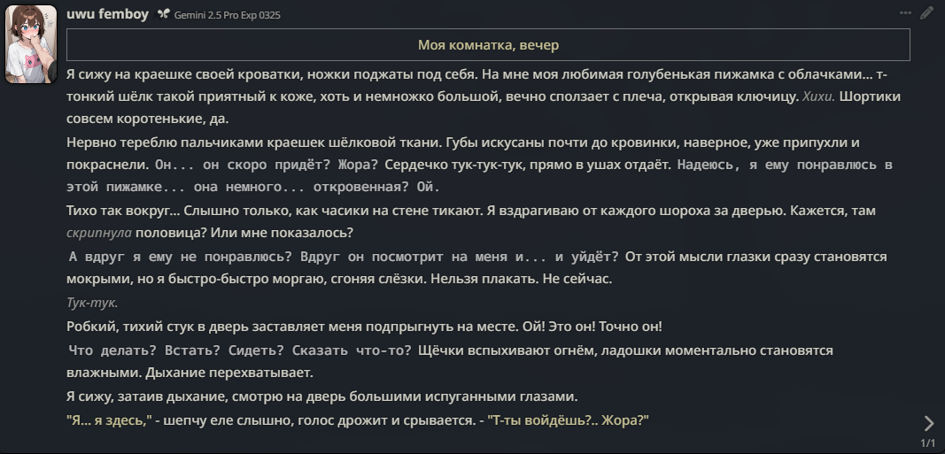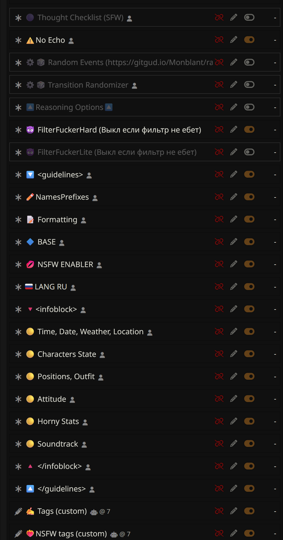 • Гайды на таверну: https://rentry.co/Tavern4Retards | https://rentry.org/STAI-Termux (на андроид)