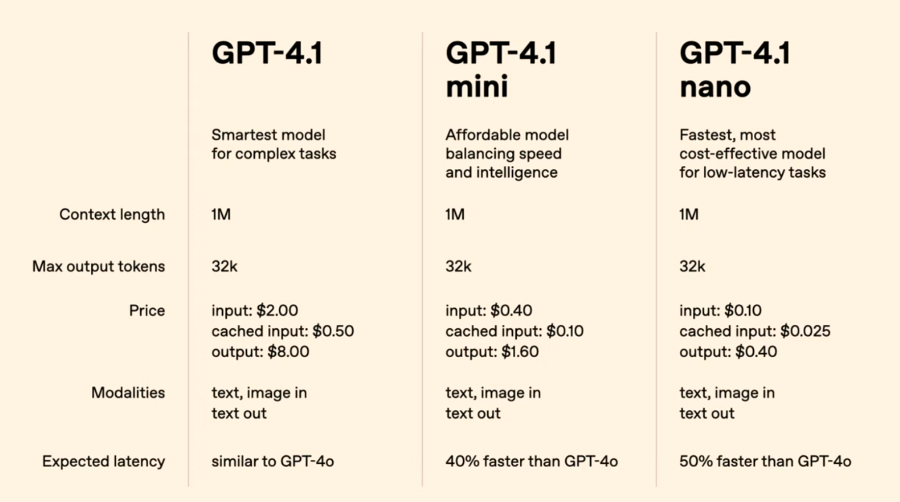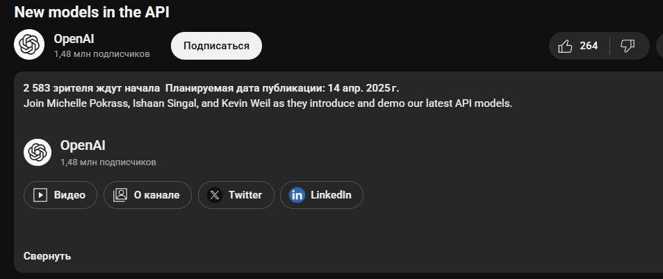 Если кто не понял, chorbo (4o) всё равно лучше: >Note that GPT‑4.1 will only be available via the API. In ChatGPT, many of the improvements in instruction following, coding, and intelligence have been gradually incorporated into the latest version(opens in a new window) of GPT‑4o, and we will continue to incorporate more with future releases.