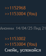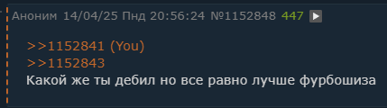 Кто не хочет сидеть в одном треде с Дядей Нормисом Нейроимпотентом Слоподелом, накатывайте регекс автоскрытия #exp(/[>0-9\n]ЗВЕЗДОЧКА^[а-яa-z]/m) | Этот дебилоид упертый, так что с крупной буквы писать никогда не будет. Другие мелкобуквы уж потерпите если вас задело.
