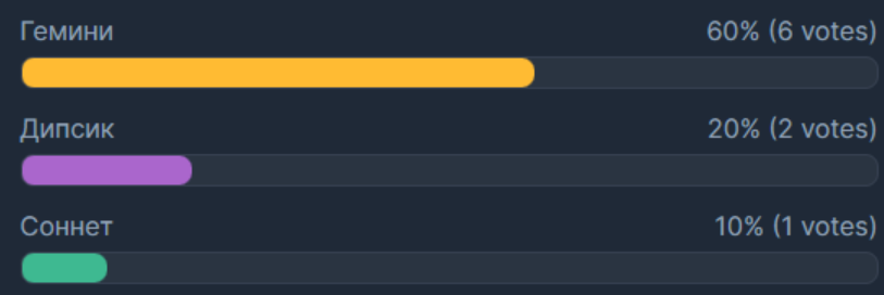 Гемини для слоубернеров, которые любят долгий РП с кучей персонажей и сюжетных событий. Соннет для кумеров, которым важнее всего пофапать на любимую вайфу. Дипсик для жокиров, предпочитающих отбитые шизосценарии.