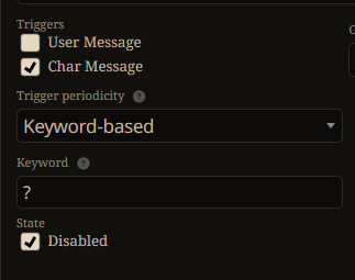 Еще раз обращаю внимание что в безризонинговой версии на данный момент не работают триггеры лорбуков по последнему сообщению юзера. Если вы напишите "Машка, пойдем гулять" - персонаж "Машка" не подтянется по кейворду.