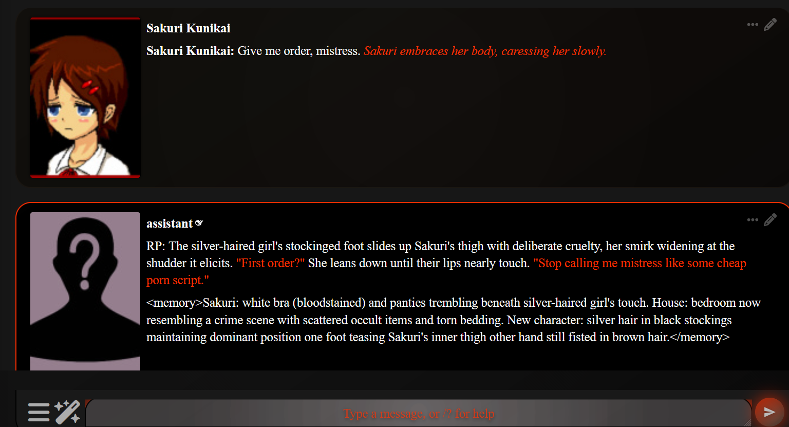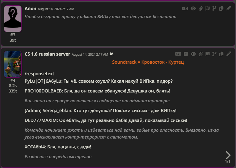 Так-то вроде похоже на то что надо (по крайней мере они не задают прямые вопросы), но вот вы блять РПшите или в бенчи играетесь?