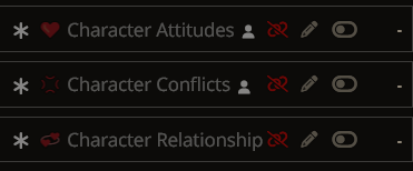 >>1153637 >>1153639 Отношения так пока что расширил, attitude это отношение персонажа Х к персонажу Y, а relationships это взаимоотношения. >>1153685 Не