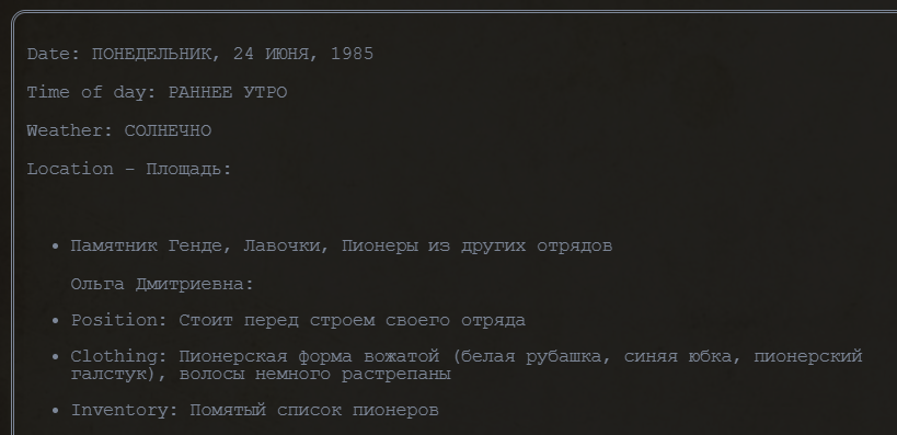 >>1153442 Там он раньше был с костыльной думалкой, удалил + для локаций такое добавил Location - {Location's name}: - {Props and items inside location}
