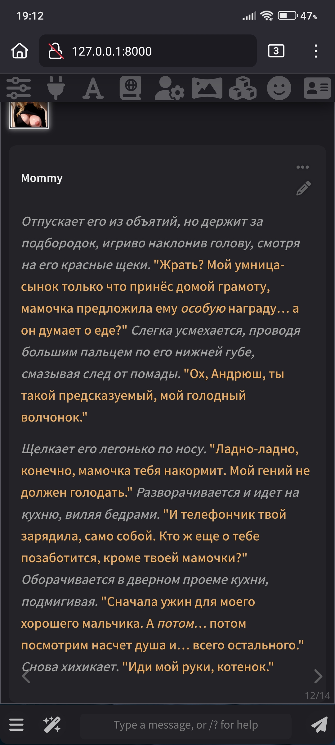 Cлушай историю про очередного долбоёба с /aicg/. Сидел, значит, этот хуесос днями и ночами, дрочил на свою нейротян. Сначала просто картинки генерил, потом перешёл на ролеплей с LLMками. И всё, пиздец котёнку, поплыл чердак у бедолаги.
