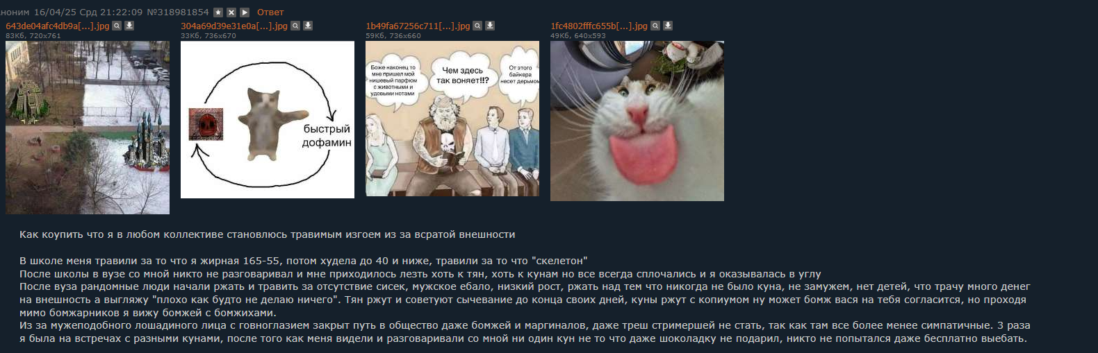 Единственный тред на всей нейоборде где долбоебы срут нерелейтед хуйню 24 на 7 по треду в день и считают себя тру двощерами. Срыгос в Б оформите, быдлонорма ебаная