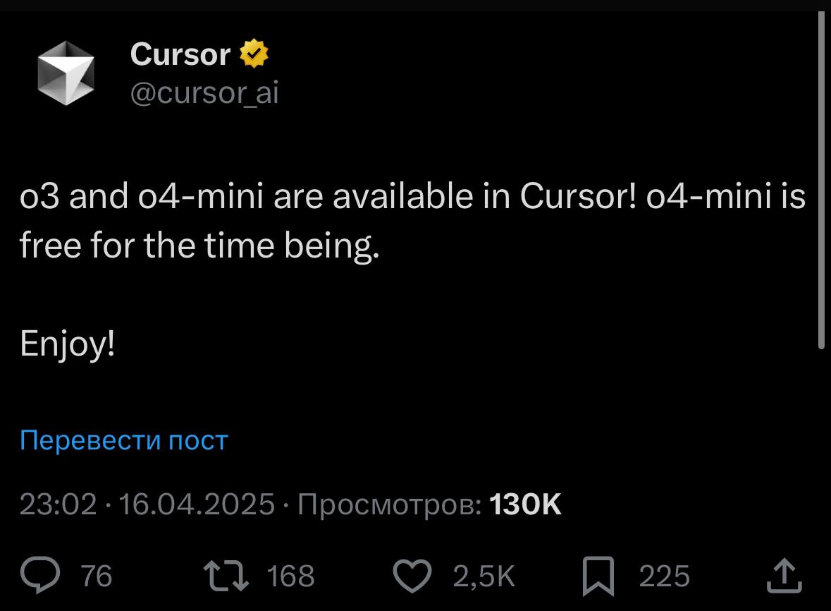 — И приятный бонус для фанатов API — о3 сильно дешевле о1: 10/40$ вместо 15/60$.