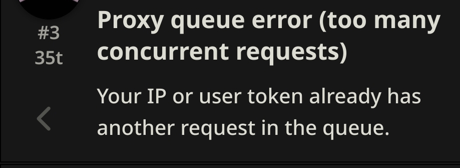 Абобыч как фиксить это: Your request has been terminated by the proxy because it has been in the queue for more than 5 minutes. По кд новый токен делать чи шо?
