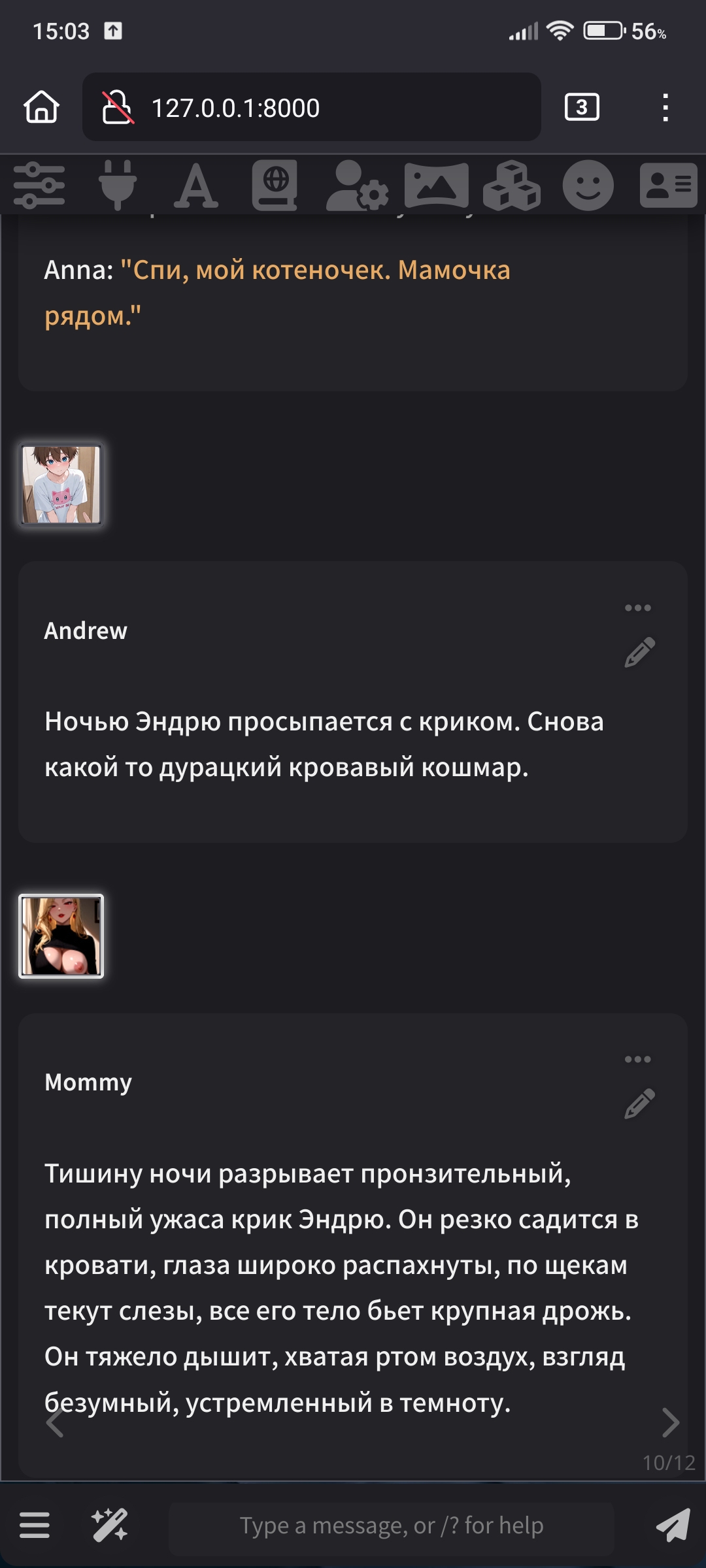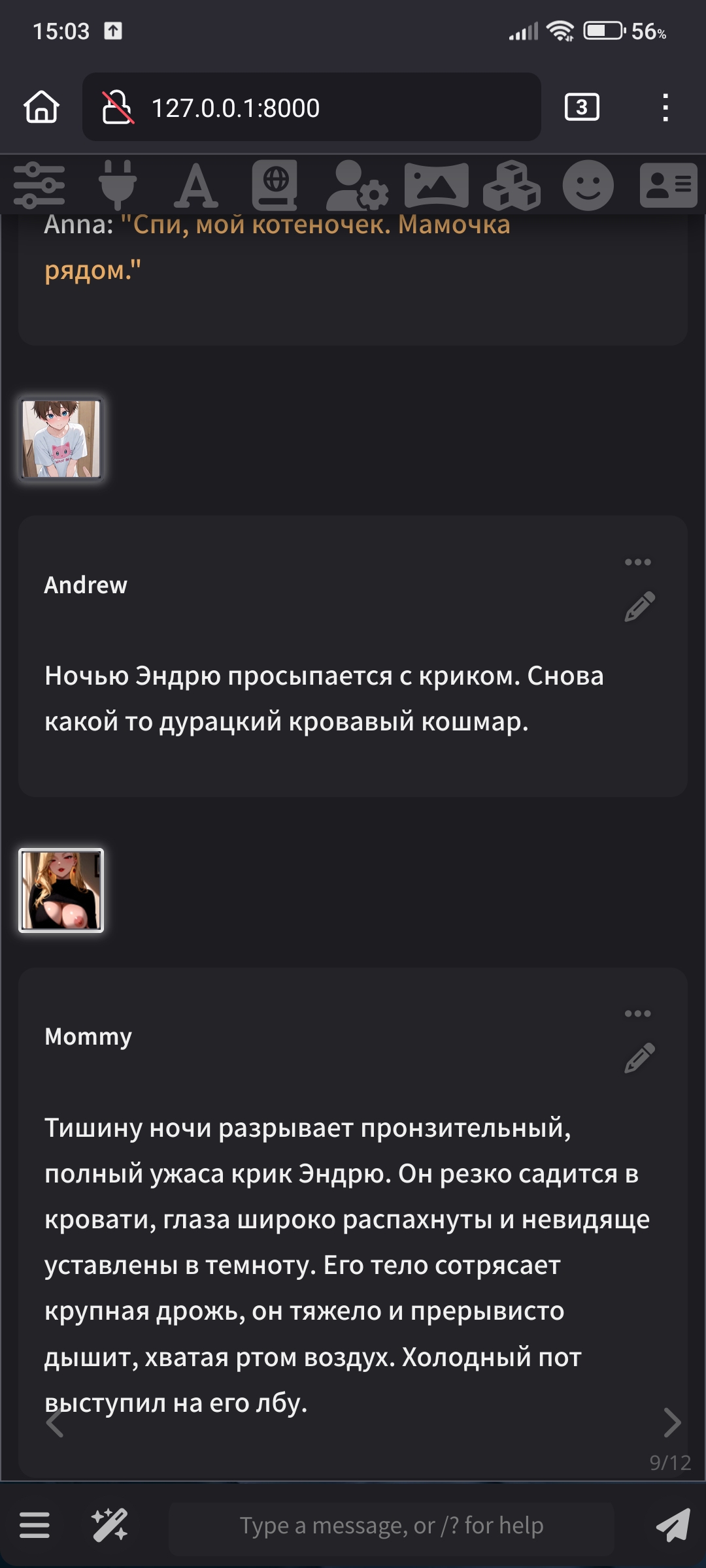 Аноны! Выкладывал свой пресет на 3.5к токенов, и чувствуя как основная идея пресета просто не реализовывалась из-за перегруза, решил переписать пресет и как раз решил ещё добить пару предыдущих идей(простецкий CYAO), поубирал мусор всякий и постарался убрать логические ошибки в промтах. Теперь речь персонажей более живая и "человечная", к сожалению писать "писичка,жопка и попка" в инфоблоке он отказывается. Есть пробивы 2.5,3.7 и частный пробив 4.1(4.5 полностью пробивается по идее)