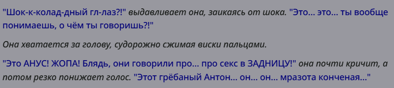 Анлокнул новый филл в фемпове: попросил сетку сравнить запах шоты с запахом моих бывших. Читать это... как-то странно. Прямо как будто это лично я 50 хуев пересосал, а не моя персона. Релейтабл? Упоминания смегмы на клоде игнорируйте это у меня рычаг врублен на биологию и грязь