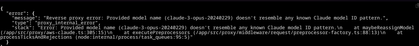 Помогите пожалуйста. "Reverse proxy error: Provided model name (claude-sonnet-4-20250514) doesn't resemble a Claude model ID." Почему так? Это у меня руки изжопы? На главной странице прокси вроде счетчик токенов на клоде растёт.