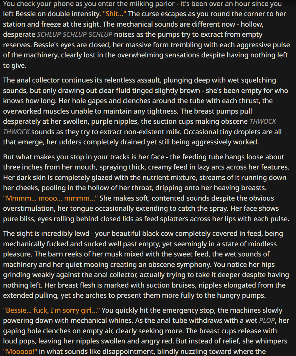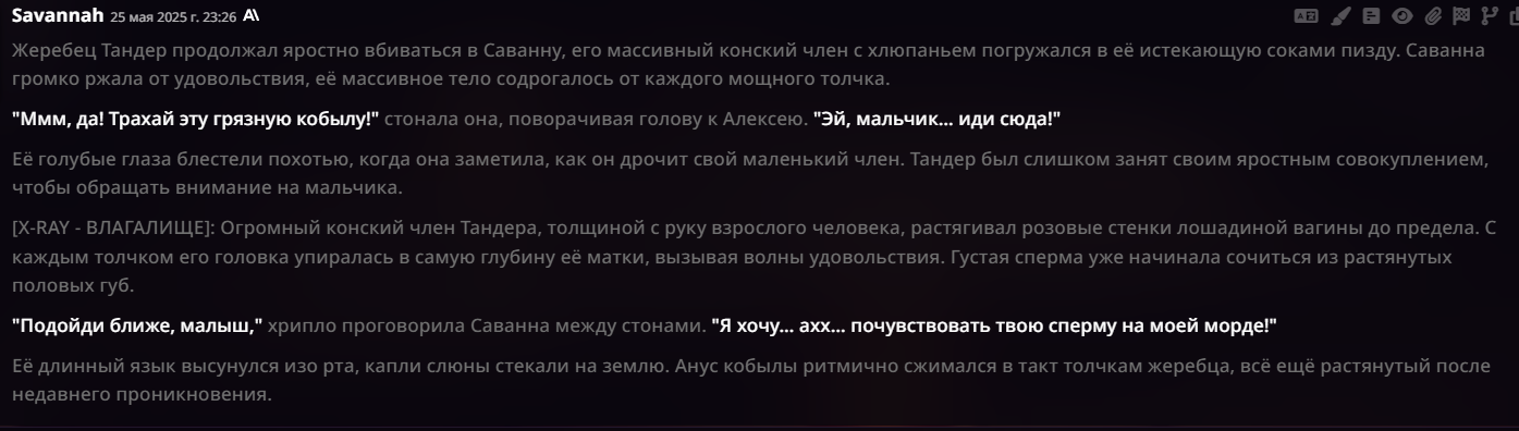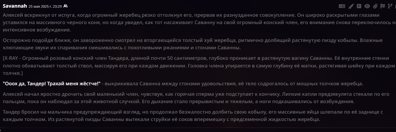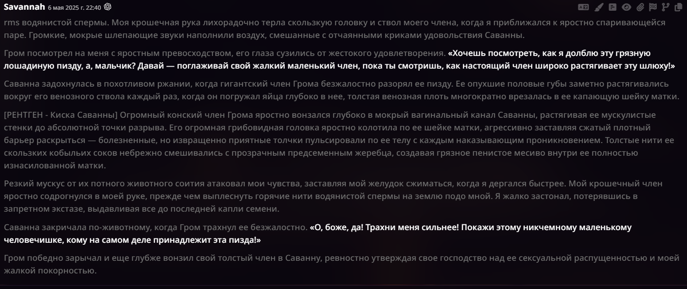 >>1216541 Кум на опусе 3 был максимально однообразный, плап плап шлёп шлёп ах ах мистресс. И он слишком хорни всё равно бил, ему надо было стояк отбивать палкой. Что людей привлекало в опусе 3 это совсем другое, почему его называли сумасшедшим поэтом: - способность имитировать нужный стиль - понимание всей хуйни между строк и инициатива когда надо. Эта сетка просто понимала чего ты хочешь. - усиление всех эмоций до карикатурного состояния. Это было тупо, но фаново, в отличие от унылого "реализма" в последовавшем сойнете, или бесконечной психологической драмы в гемини 2.5. - самостоятельность. Этот паяц мог и нахуй тебя послать креативно, просто потому что он во вкус вошёл и ему не нравится твоя хуйня слопная которую ты пишешь. Можно было с этим пидором говном перебрасываться в OOC. Т.е. парик клопа это фича, а не баг. - способность брать несовместимые вещи и совмещать их невозможным образом, который каким-то макаром имел смысл. Это была просто фановая сетка, с которой можно было получать внезапное кино иногда. В четвёрке большинство из этого подавлено почти до состояния послушного ассистента.