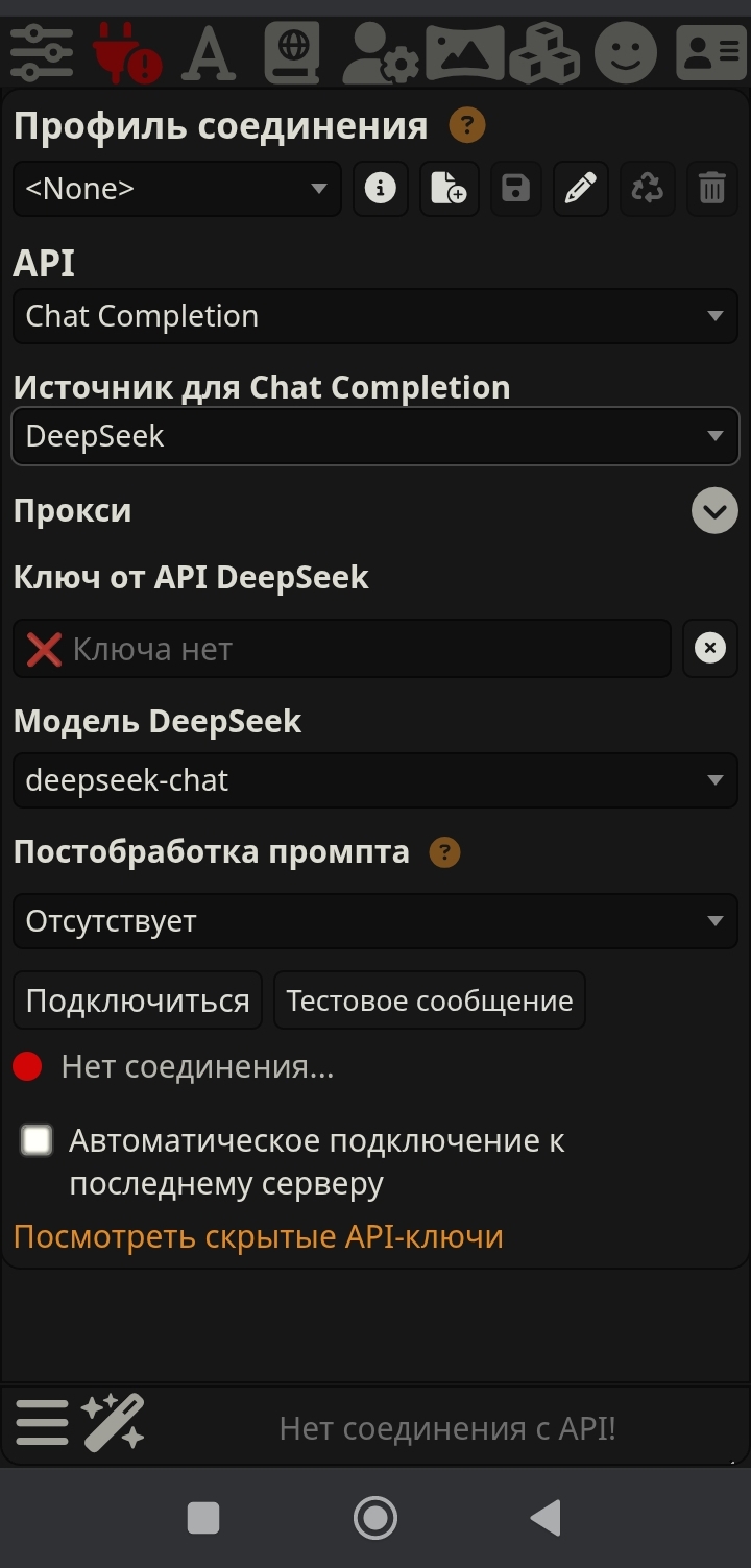 >>1216720 Открой сайт агнаи и вбей туда ключ опенроутера, там выбери дипсик... зачем ты ебешься вообще с таверной на мобиле, это только для самых отбитых