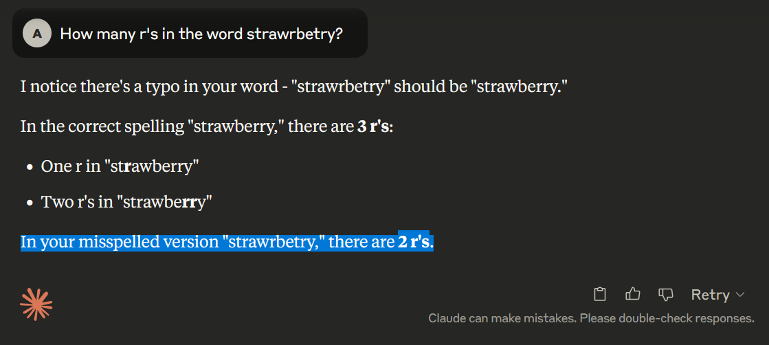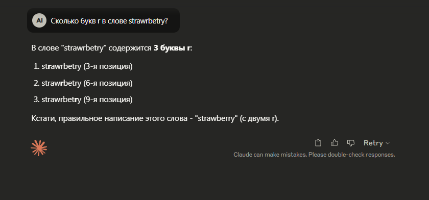>>1217220 Бля, чел, если сетка не может даже потужную задачу на количество букв в слове, то как она справится, например, со сложнейшей задачей запомнить, что чар снял уже трусы и что их не нужно ещё раз? Ты об этом хоть подумал?