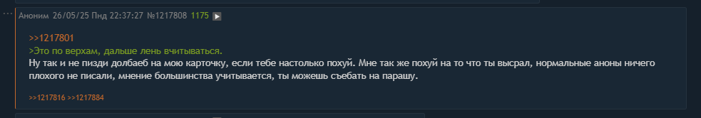 >>1217801 >Это по верхам, дальше лень вчитываться. Ну так и не пизди долбаеб на мою карточку, если тебе настолько похуй. Мне так же похуй на то что ты высрал, нормальные аноны ничего плохого не писали, мнение большинства учитывается, ты можешь съебать на парашу.