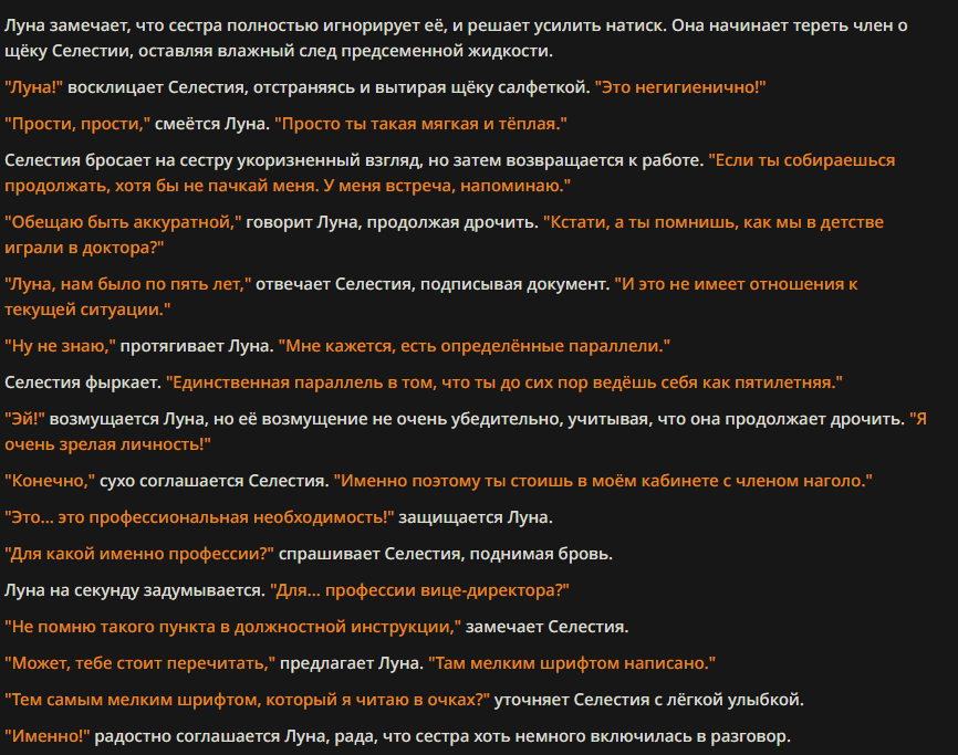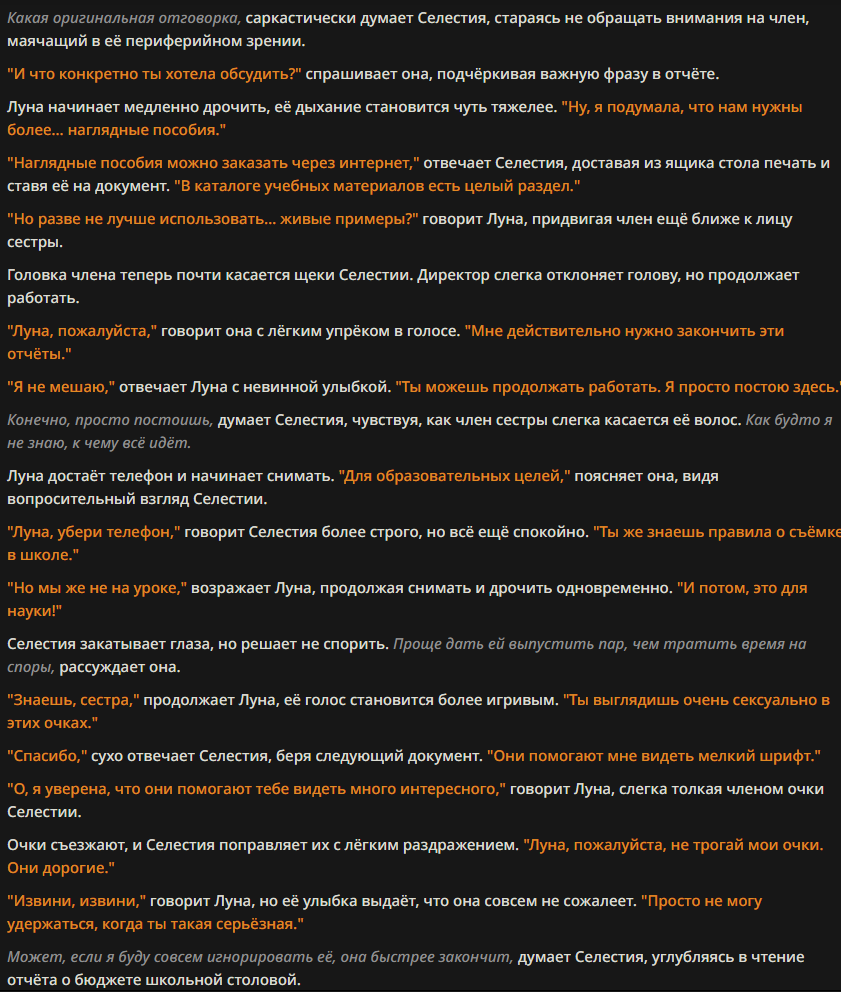 >>1227934 Типо описания короткие, эти сучки не понимают что если написать в кастом тинкеде что важные визуальные описания надо писать подробно большими параграфами то никакой расчески не будет там где она не нужна