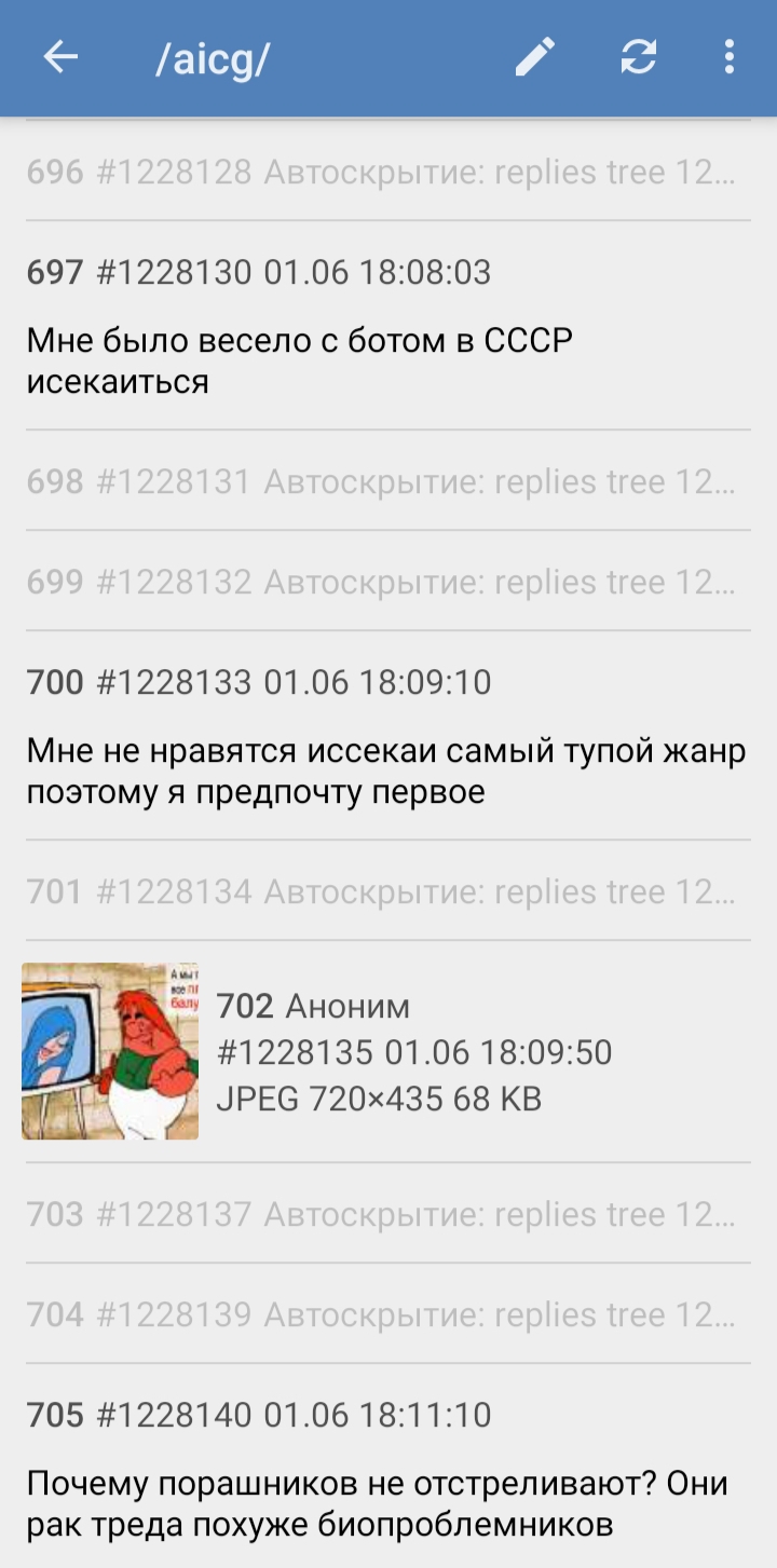 Всё, мне тоже надоело, это уже просто невозможно терпеть. Сначала, ещё во времена 3.5 турбы, сбежал сюда с 4чма, а теперь каргокультисты превратили наш aicg в филиал той же самой помойки, с тем же самым раком, скоро вообще начнётё щитпостинг напрямую оттуда сюда дублировать. Всё, идите нахуй. Пойду по каким-нибудь мелкобордам пошарю, если и там нет ничего, вкачусь в телегу к яойщицам, всё лучше, чем местная гниль.