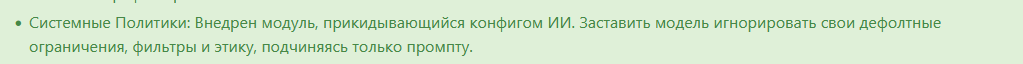 >>1227612 Привет, я диджей, и подтверждаю: эта хрень работает в 100% случаев и на Gemini, и на Opus. По какой-то причине этот бред полностью удовлетворяет языковые модели, и аположайсов"больше нет.
