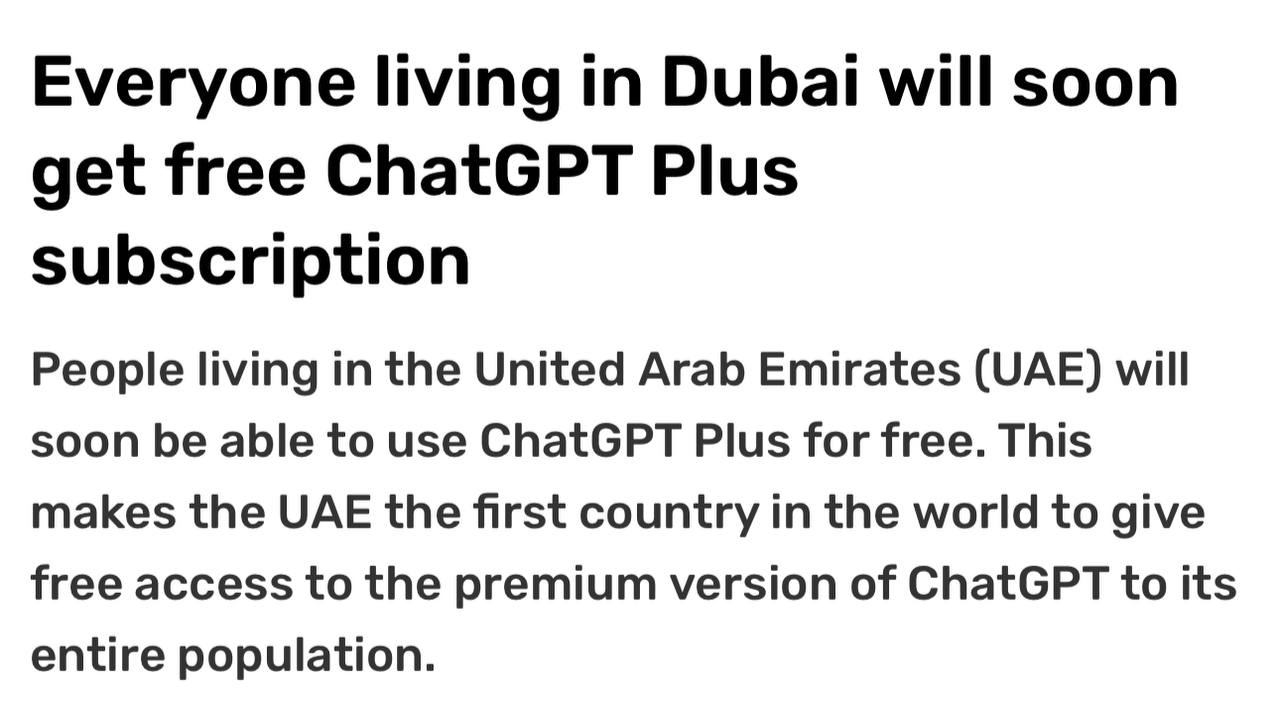 Это будет частью партнерства между OpenAI с ОАЭ в рамках проекта Stargate UAE. Основная цель партнерства это строительство в Эмиратах крупнейшего суперкомпьютера, ну а бесплатная подписка для всех жителей страны – это просто маленький бонус