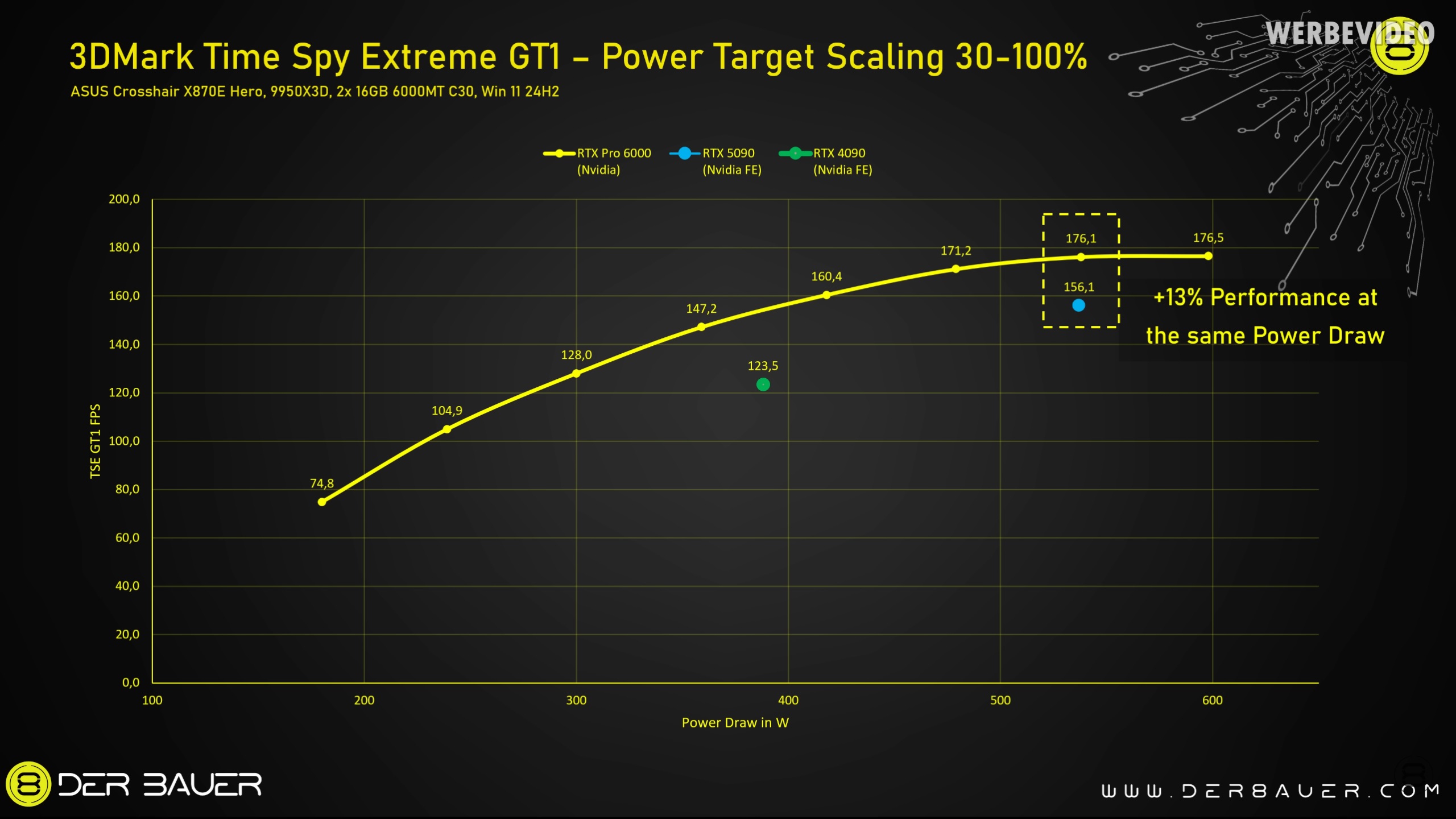 Ютубер "der8auer" оказался достаточно безумен, чтобы купить и протестировать эту карту, ведь стоит она от 8 до 10 тысяч долларов. Впрочем, для энтузиастов нейросетей это копейки. Особенно учитывая, что эти карты поддерживают технологию NVLINK и позволяют объединить две RTX Pro 6000 в одном домашнем компьютере, таким образом создавая пул памяти до 192 ГБ, что открывает широкие возможности для использования передовых нейросетей, научных вычислений и в сложном моделировании.
