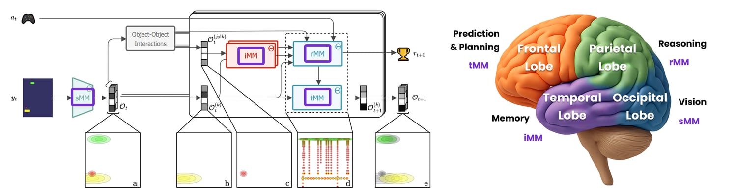 ℹ️ 3. Биологически вдохновлённый дизайн AXIOM имитирует модульную структуру мозга, включая: - Восприятие (аналог затылочной доли) - Память и идентификацию объектов (височная доля) - Прогнозирование и планирование (лобная доля) . Это позволяет ему обобщать знания между задачами, как это делает человек.