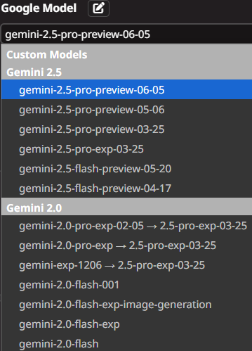 >>1243408 В прошлом треде ссылка на прокси. Подключись, нажав коннект и проверь еще раз, по идее появятся все доступные модели по эндпоинту. Ах да, у тебя версия сверхстарая. Должно быть AI Studio