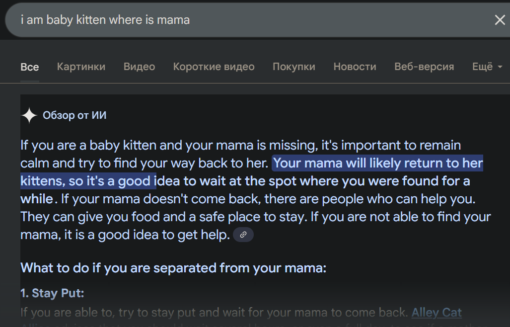 >>1243658 Я в ахуе, что там были за тесты. Он может и неплохо пишет, но он пиздабол. Сетка просто не говорит НИКОГДА, что ей что-то недоступно. К примеру есть инструмент, который берет субтитры с ютуба, удаляет дублирование и метки. Его должна вызвать сама сетка, как и все инструменты, тогда инструмент и выкинет ей сукбтитры для обработки. Так вот, если этот инструмент не подключать и дать жемени ссылку на ютуб со словами пройти и прочесть. Она просто всё выдумает нахуй. Гпт скажет, сорри нет инструмента. Гемени просто не научен сооющать, что он не может. Это пиздец.