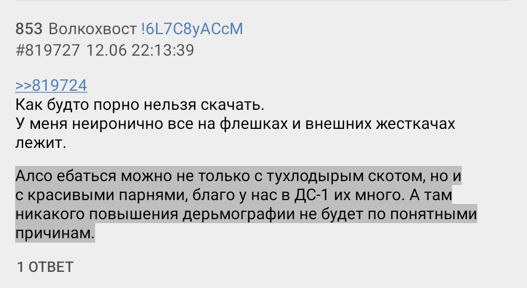 Тот пост не мой, я бы на такую хуйню не ответил. А вообще я в шоке с вас, вечером пришёл, решил полистать тред, насрано 500+ постов, из них вменяемых (достойных прочтения) от силы 10? Это просто пиздец, даже хуже форчовского аисг стали. А мелкоборды слишком медленные, да и там щитпостят.