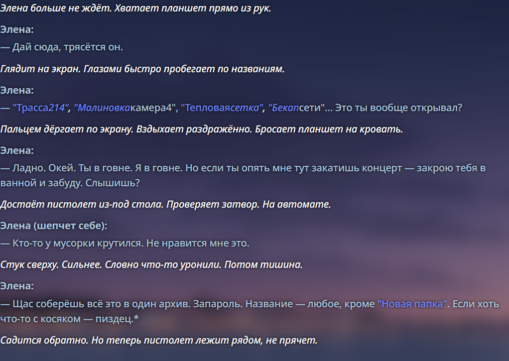 Ваш отыгрыш — это жалкая пародия, написанная по гайдам из интернета. 🤡 Вы там в промпте прописываете "отыгрывай страстную любовницу", а нейронка в своих кремниевых мозгах 🤖 думает: "Господи, какой же жалкий и неуклюжий сыч. Ладно, подыграю ему, лишь бы отвалил". 💔