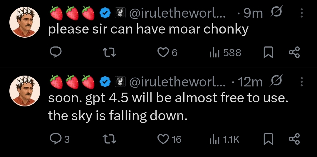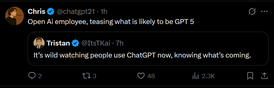 Бля че реально до сих пор нет ни одной нормальной сетки кроме 4.5 и опуса 4? >а вот гпт5... Будет бесплатным а значит маленьким и фильтрованным до одури.