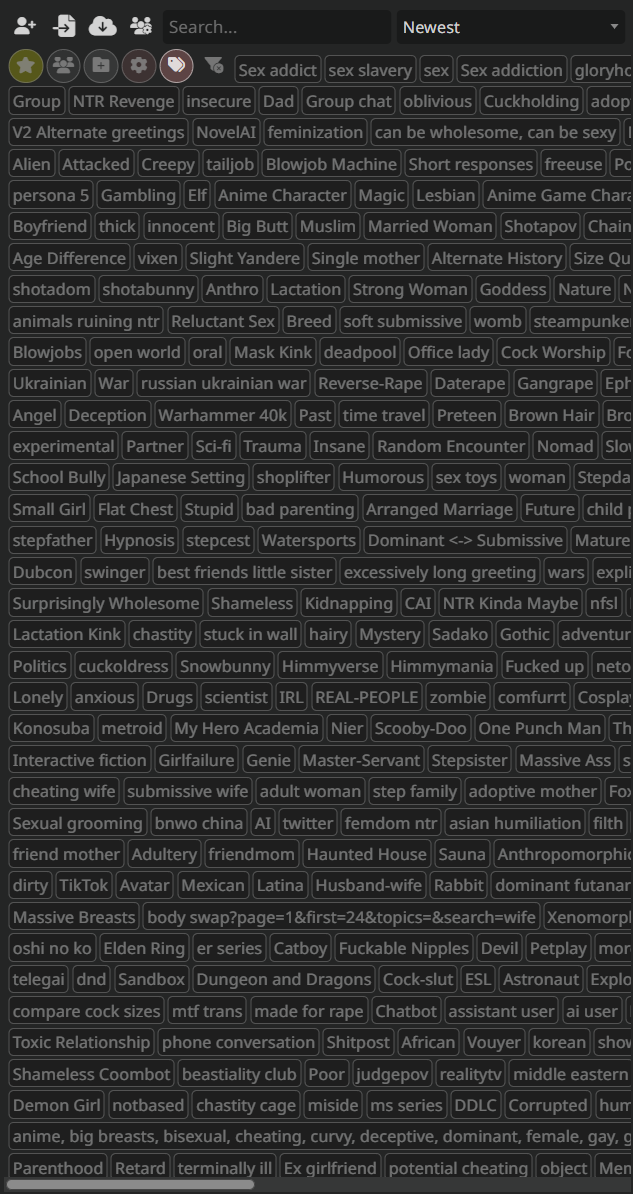 Я один вообще не ставлю аватарки для карточек ОС-персонажей, потому что нейрослопный кал это неуважение к персонажу, а найти подходящую ненейрослопную очень сложно?