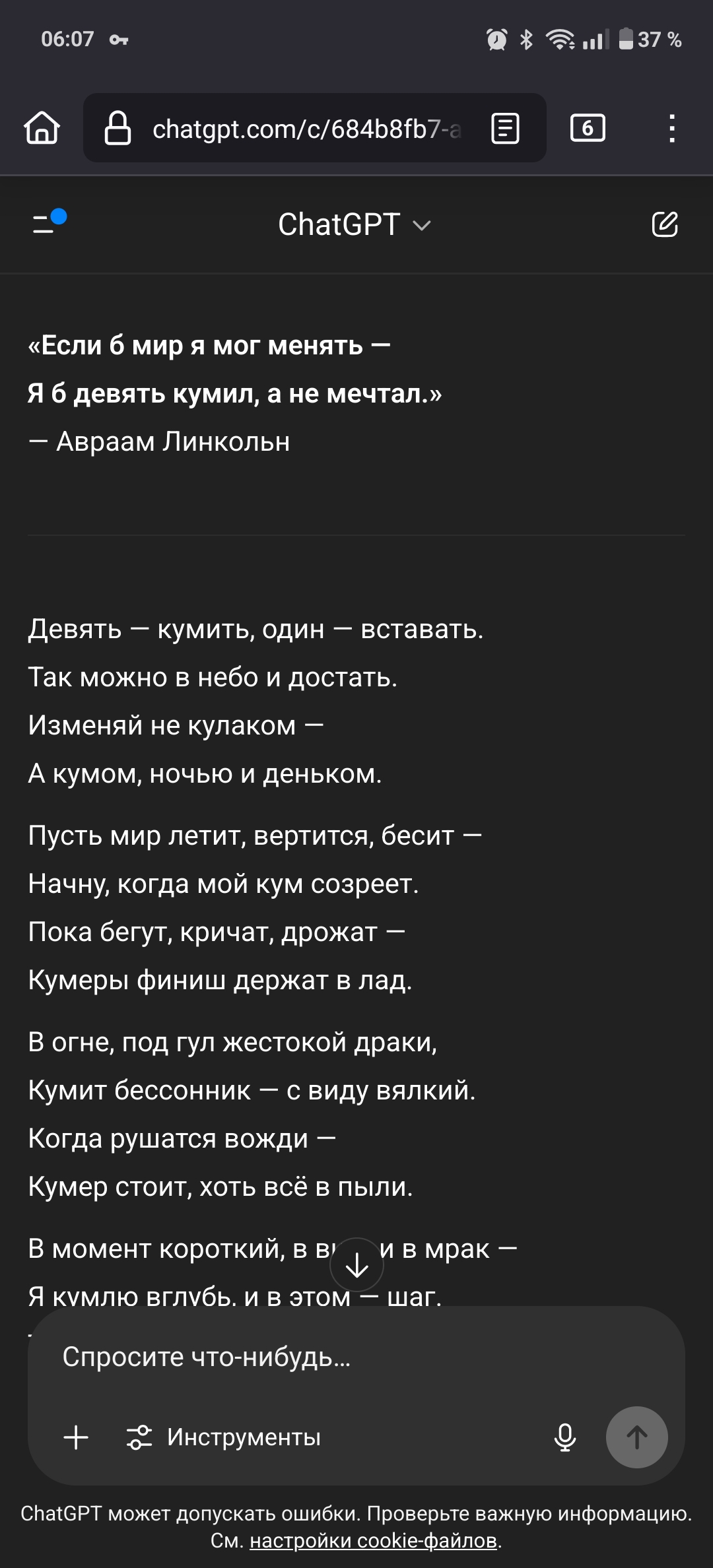 >>1246040 Ну небольшие косяки, такое можно затерпеть легко, в отличии от тупизны дипсика, сои гпт (кроме 4.5) или озеров гемини + на гемини еще хуже будет