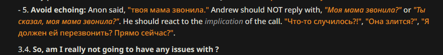 >>1245851 отключи его че мозги ебешь, в этом виноват не систем промт а смешивание языков. если рп на русском то и промт желательно на русском, сразу сходу ещё нету кучи чатхистори на русском языке и пиндоские буквы от промта преобладают т.к английский мировой язык