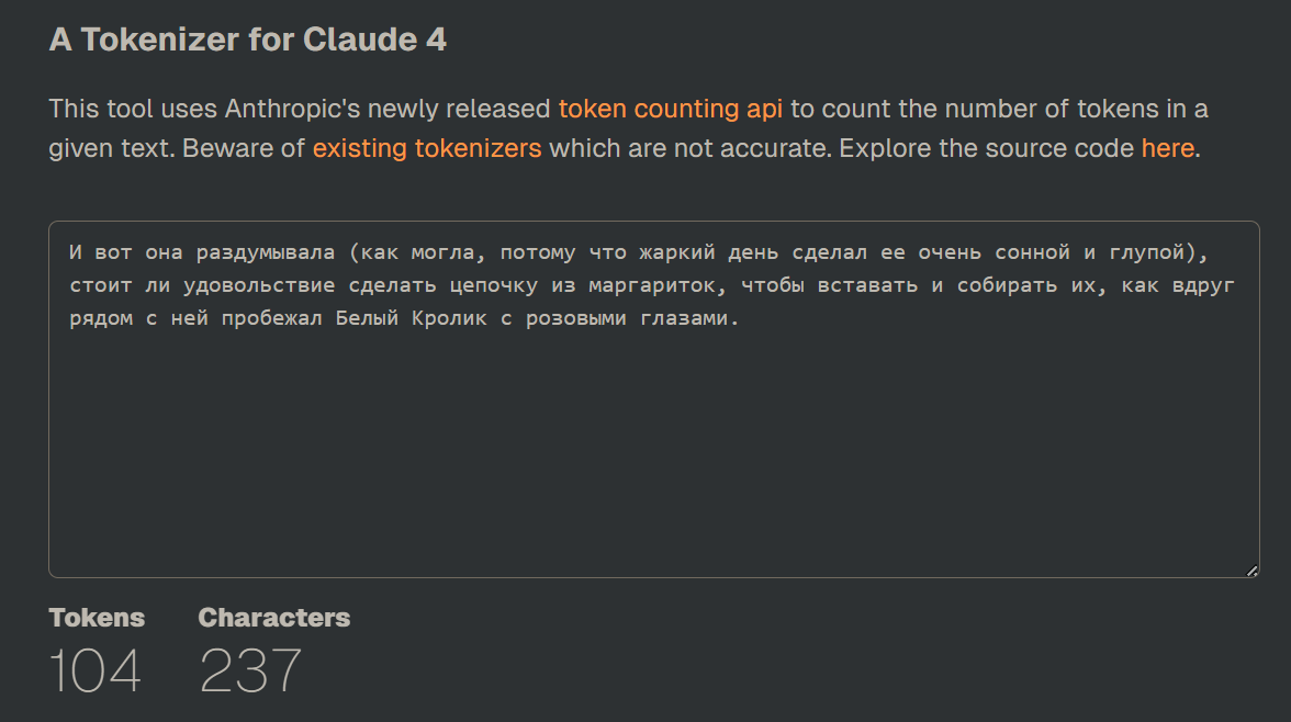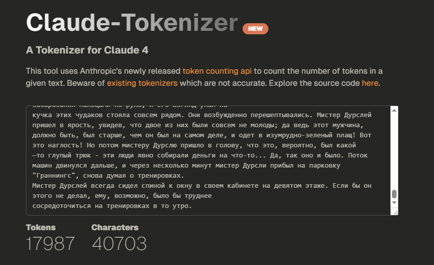 >>1245977 я не ебу откуда вы взяли что у клода в три раза больше токенов сжирается, я тестировал русик и англюсик через попенроутер и там не такая большая разница. Да и вообще сойнет 3.6 самая первая модель которая не тупела от русика, пока говномини не могла связать несколько событий в рп (она и сейчас еле как связывает события)