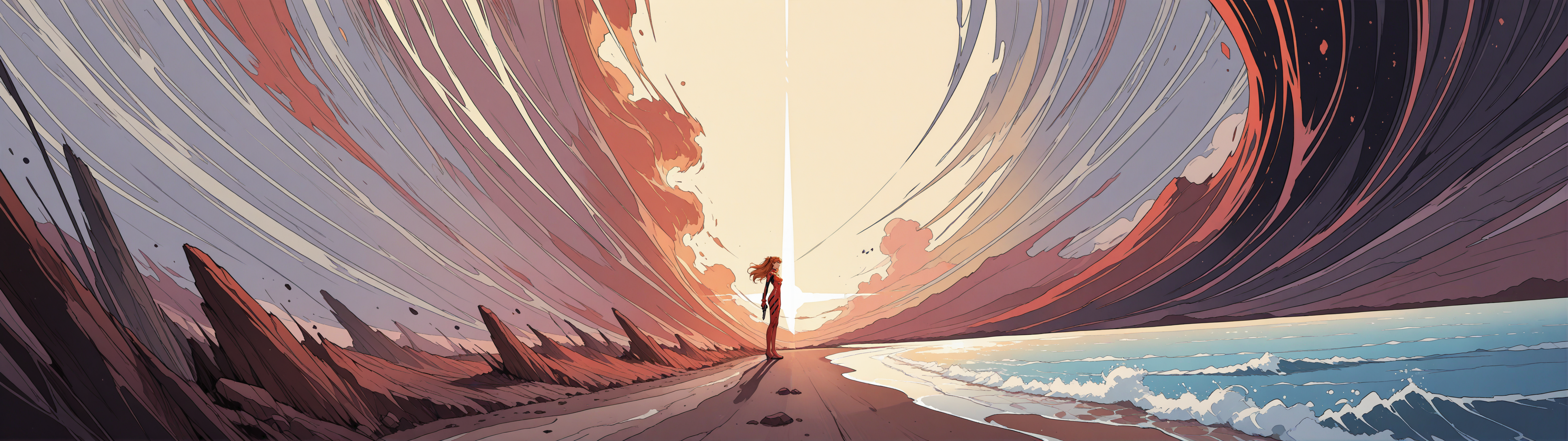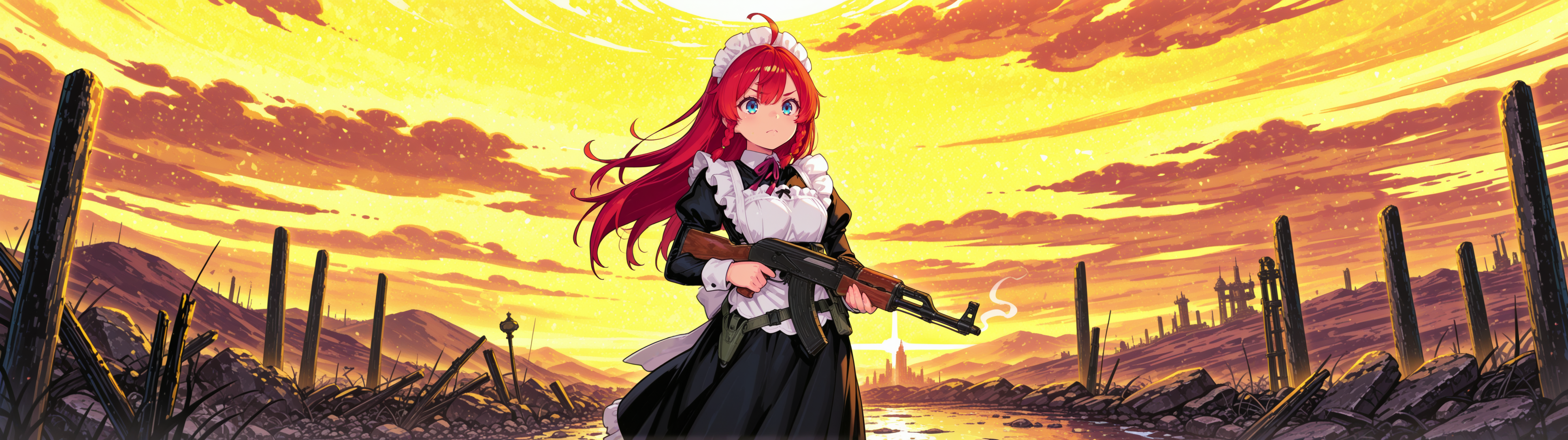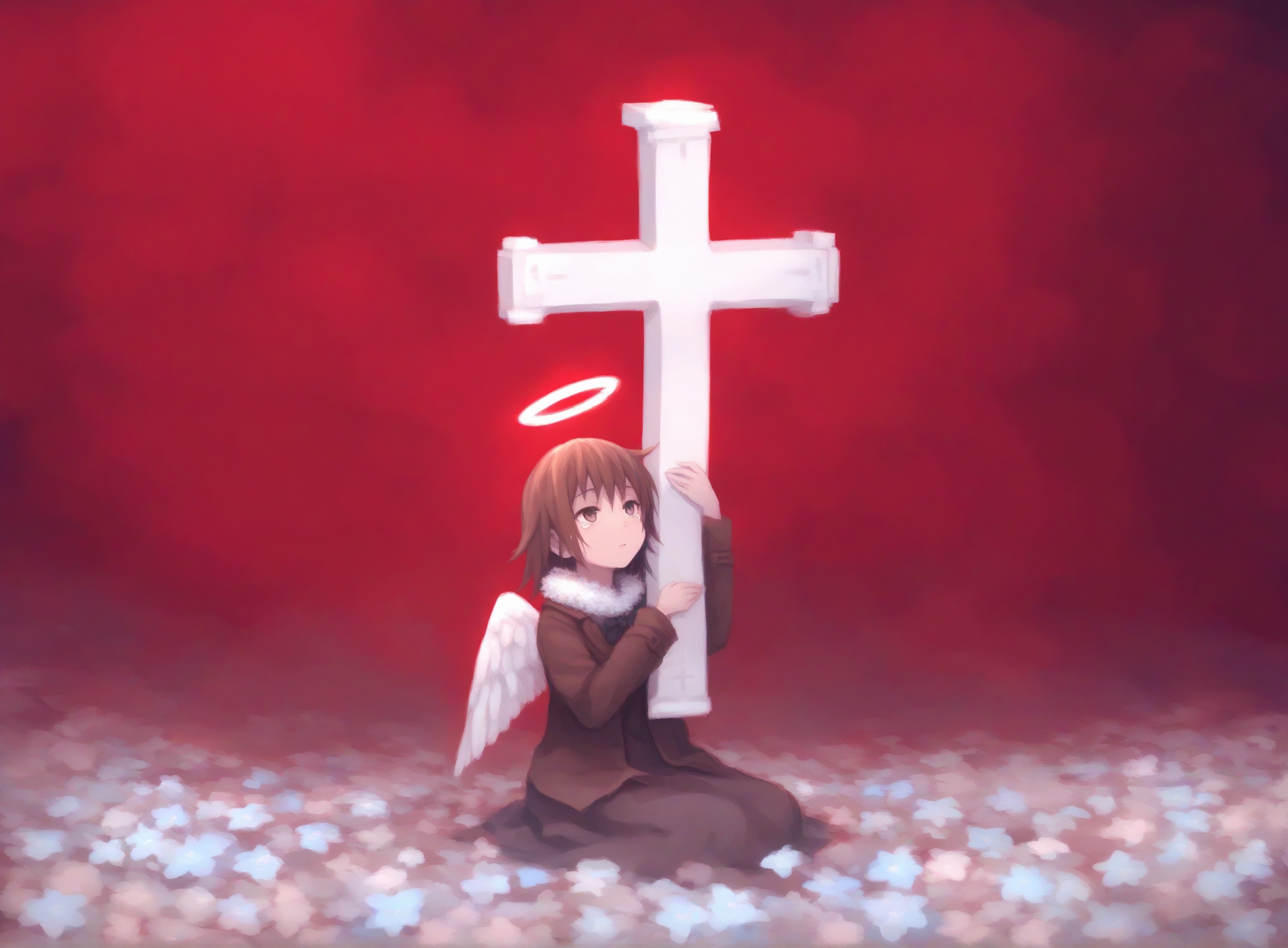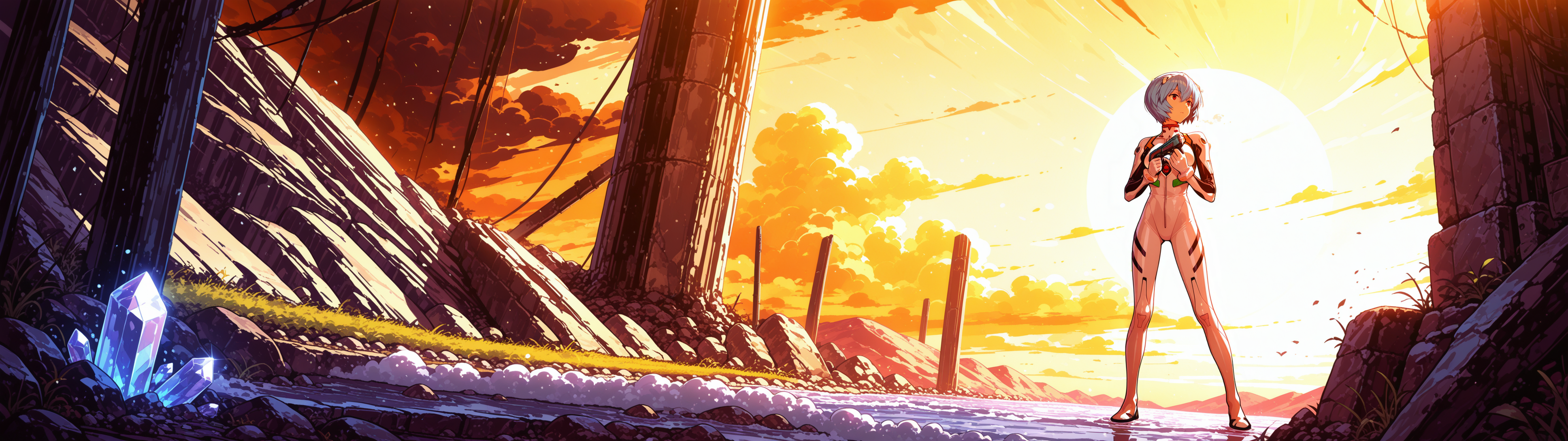 Пришла пора генерировать картинки из фанфиков, картинки из фанфиков сами себя не сгенерируют. В небе звонко хрустнуло, будто кто-то сломал огромный кусок стекла, и я невольно подняла глаза. Из дымного облака, которое все плакало горящими ошметками катера, к земле опускалось пылающее синевой распятие. Широко раскинув руки и запрокинув голову, в ореоле крылатого свечения на поле боя падал последний гвардеец Его Тени. Зеро. Аянами ускорилась метров за двадцать до земли и приземлилась так, что плита перекрытия вздрогнула, а ближайшего солдата вскинуло и порвало в кровавую пыль. «Мать вашу, она еще и боевой энергетик». Сплошное сияние померкло, и, бросив один только взгляд в нашу сторону, Рей развернулась к солдатам. Рогатые наросты на спине ее скафандра взорвались дымом, и короткие кривые клинки сгустились в руках Аянами. Поднятый на лифте легкий БТР она, похоже, решила пока игнорировать.