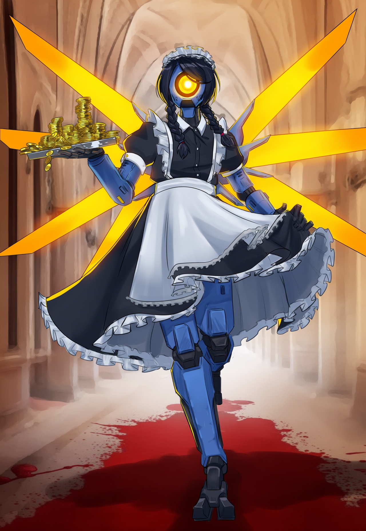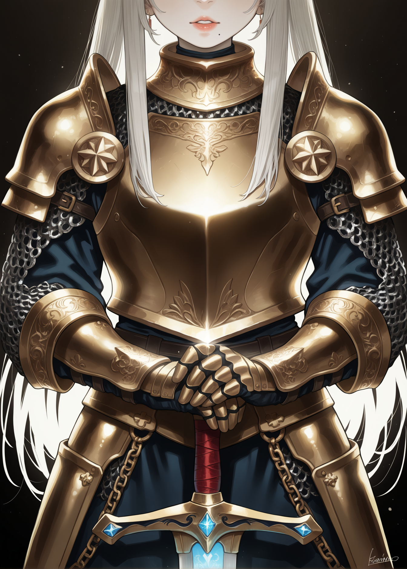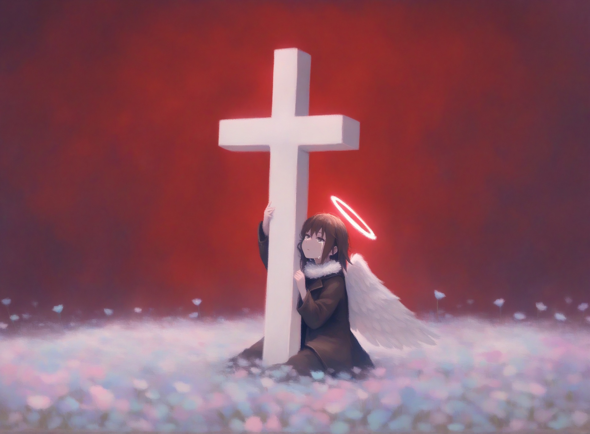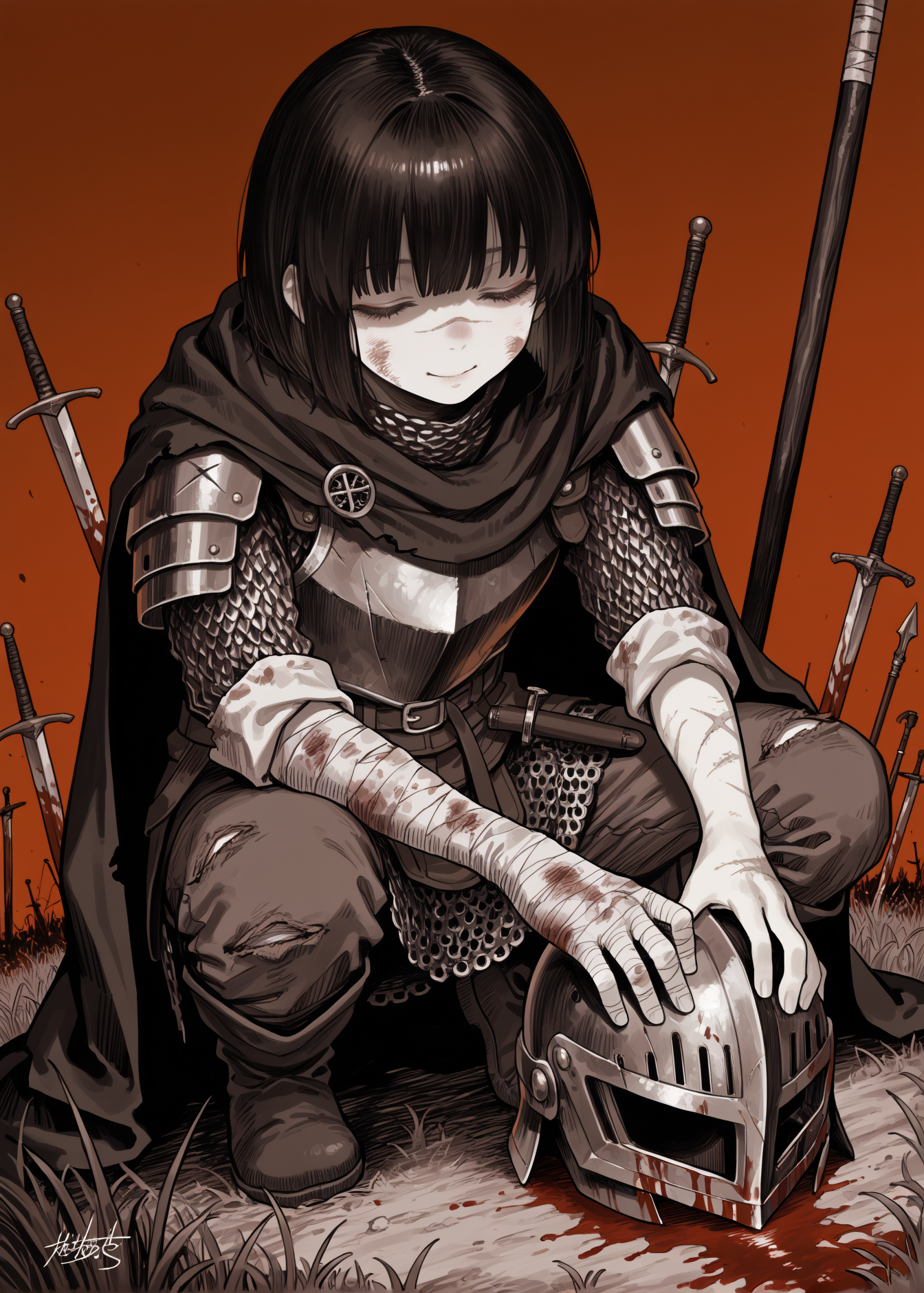 Пришла пора генерировать картинки из фанфиков, картинки из фанфиков сами себя не сгенерируют. В небе звонко хрустнуло, будто кто-то сломал огромный кусок стекла, и я невольно подняла глаза. Из дымного облака, которое все плакало горящими ошметками катера, к земле опускалось пылающее синевой распятие. Широко раскинув руки и запрокинув голову, в ореоле крылатого свечения на поле боя падал последний гвардеец Его Тени. Зеро. Аянами ускорилась метров за двадцать до земли и приземлилась так, что плита перекрытия вздрогнула, а ближайшего солдата вскинуло и порвало в кровавую пыль. «Мать вашу, она еще и боевой энергетик». Сплошное сияние померкло, и, бросив один только взгляд в нашу сторону, Рей развернулась к солдатам. Рогатые наросты на спине ее скафандра взорвались дымом, и короткие кривые клинки сгустились в руках Аянами. Поднятый на лифте легкий БТР она, похоже, решила пока игнорировать.