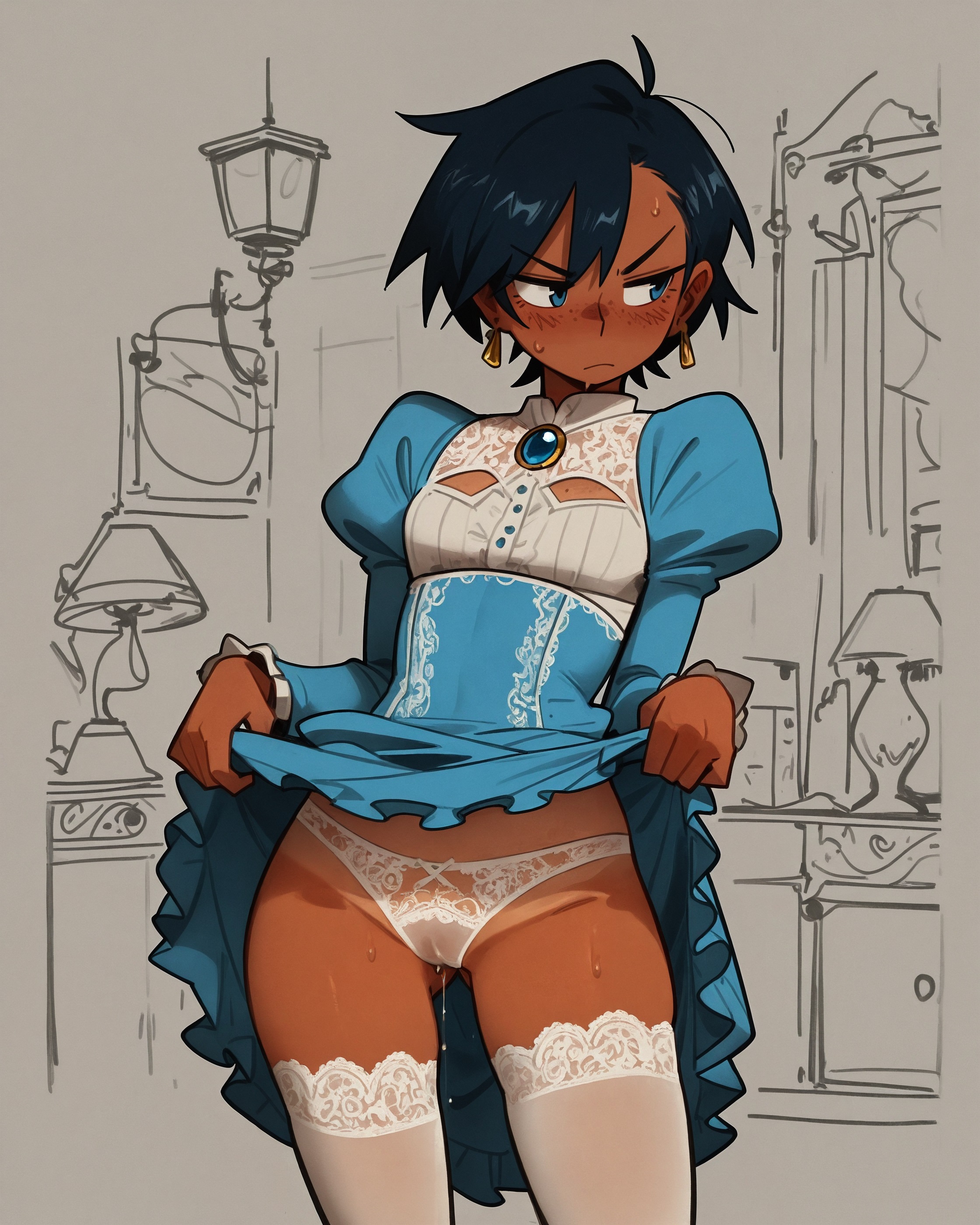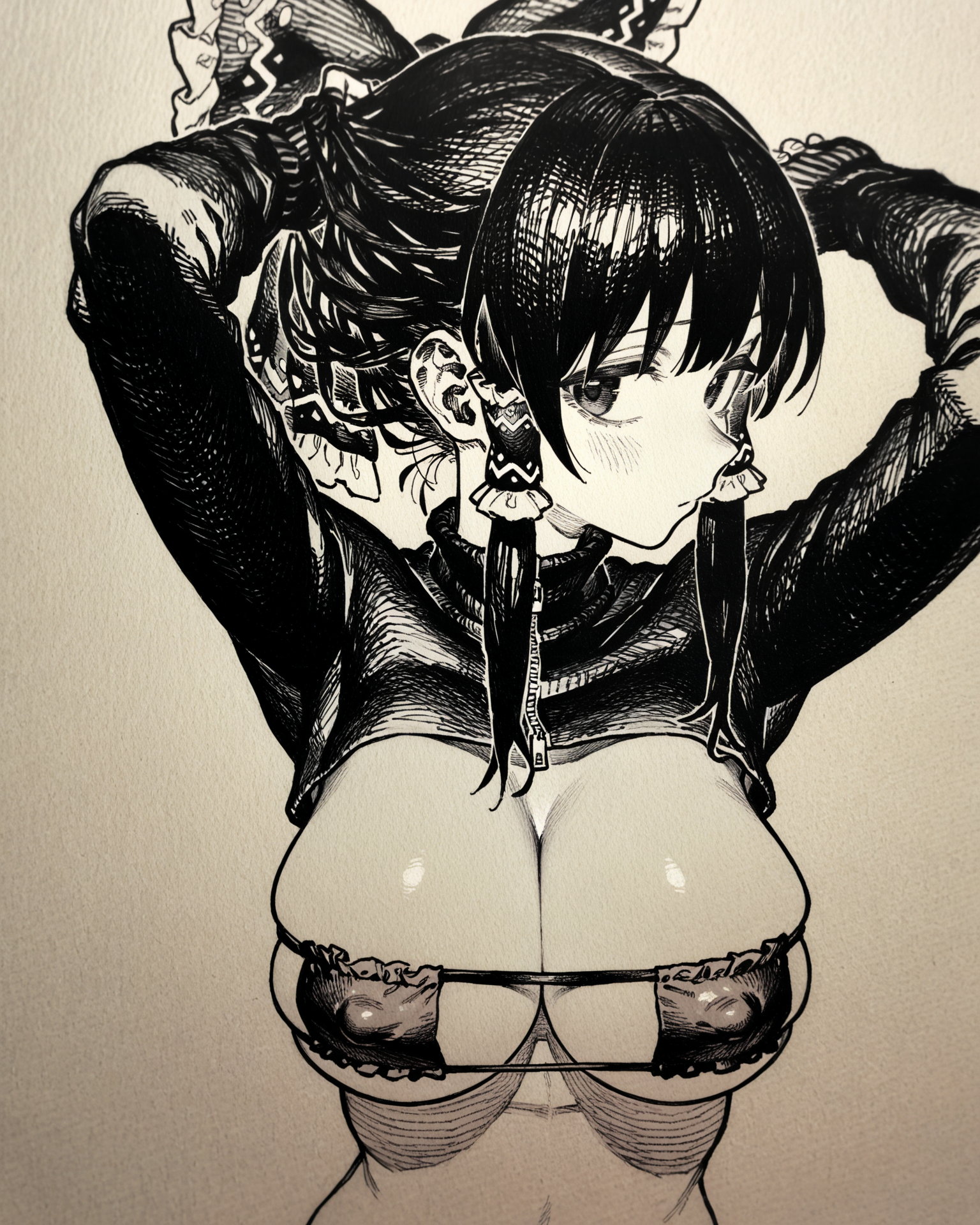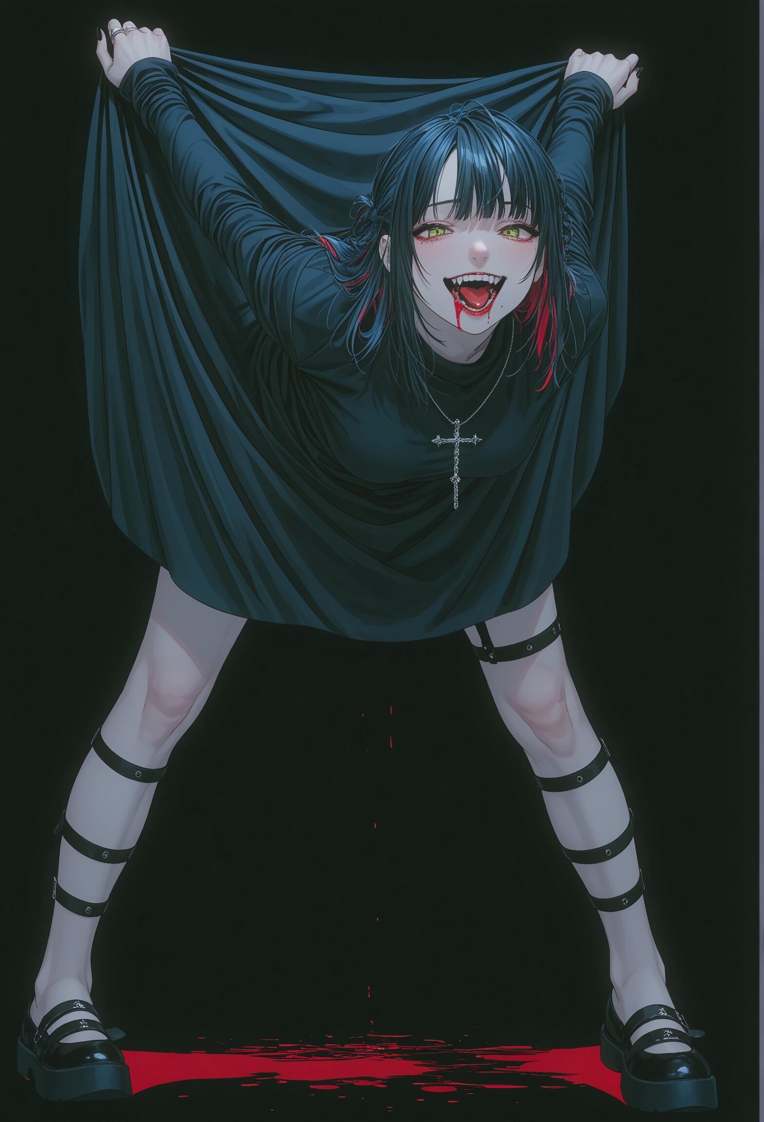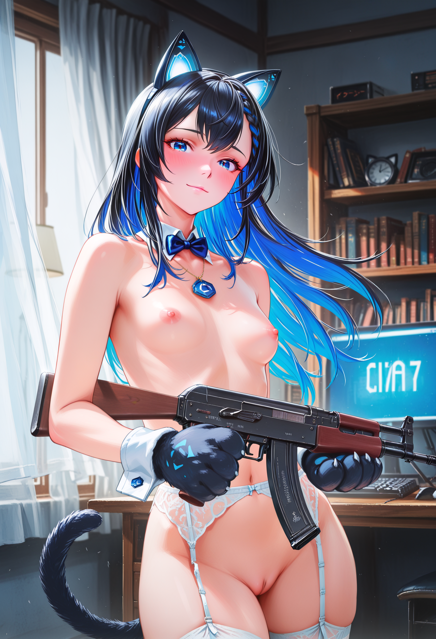 Короче не пишите в теги striped clothes или stripping bra, нейронка думает я прошу нарисовать мне потрошение и разделывание. А я то думал че мне вечно какие-то демоны, черепа и бдсм тематика лезут. Страшно подумать че там в базе модели насовали, раз такое лезет.